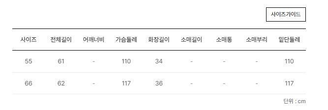 | 1. 제품 소재 (섬유의 조성 또는 혼용률을 백분율로 표시, 기능성인 경우 성적서 또는 허가서) | 상품상세참조 |