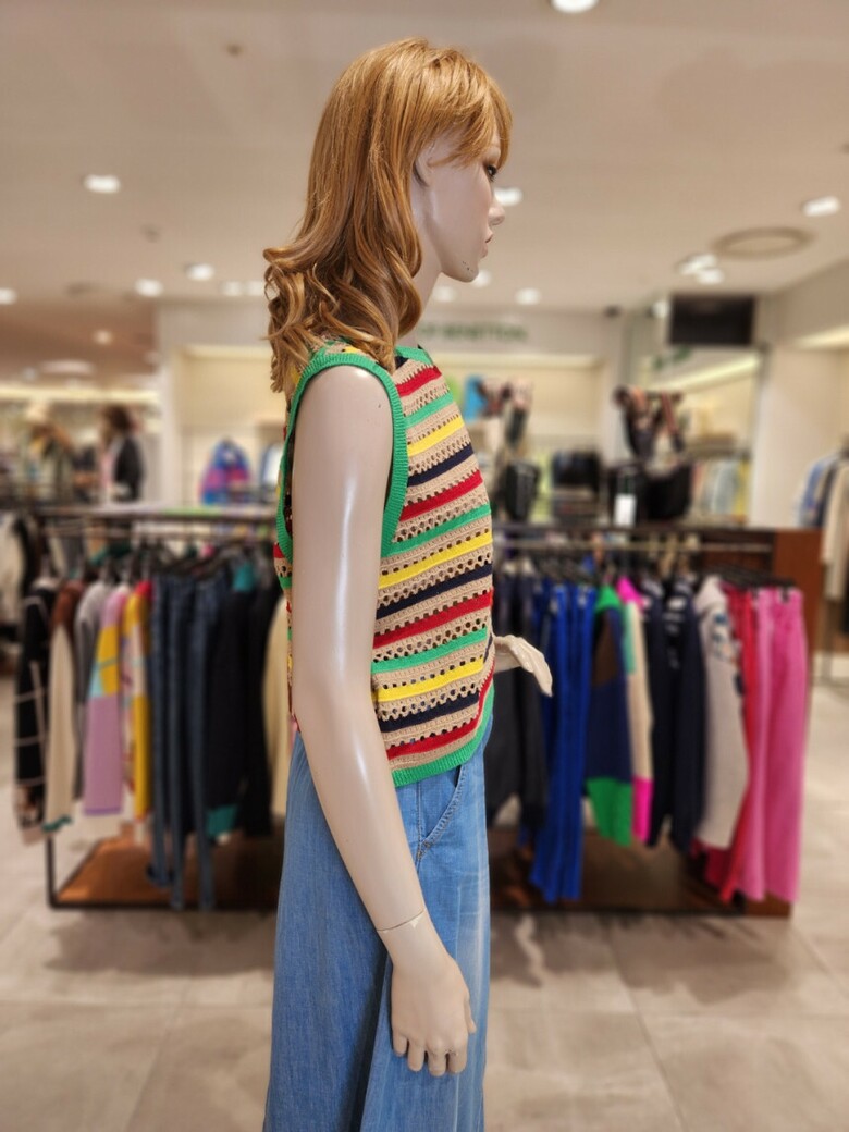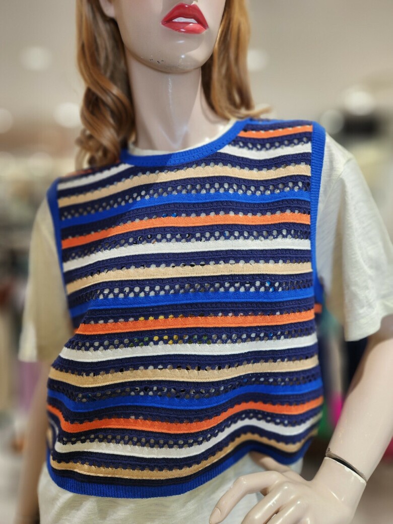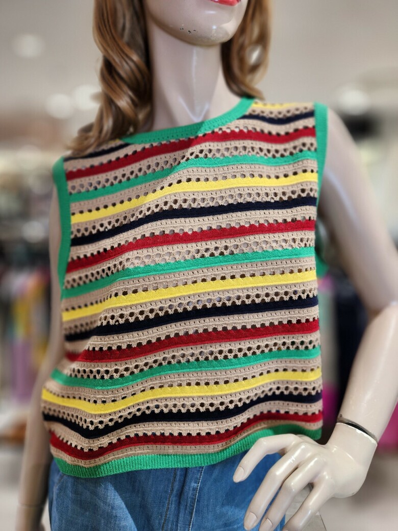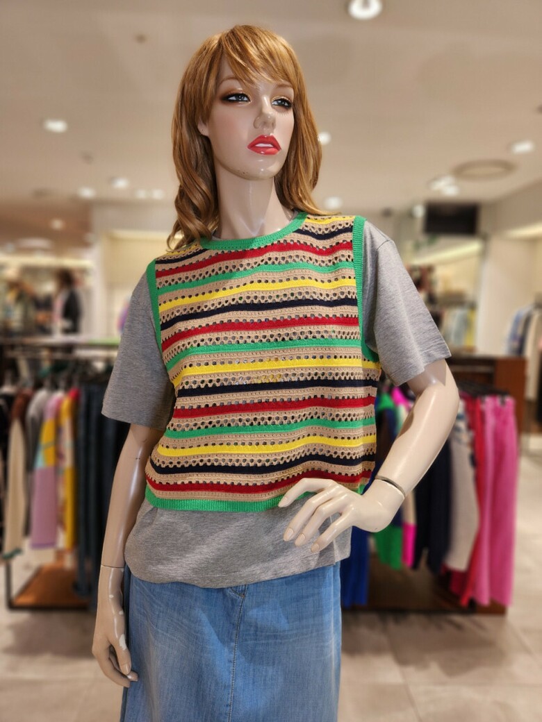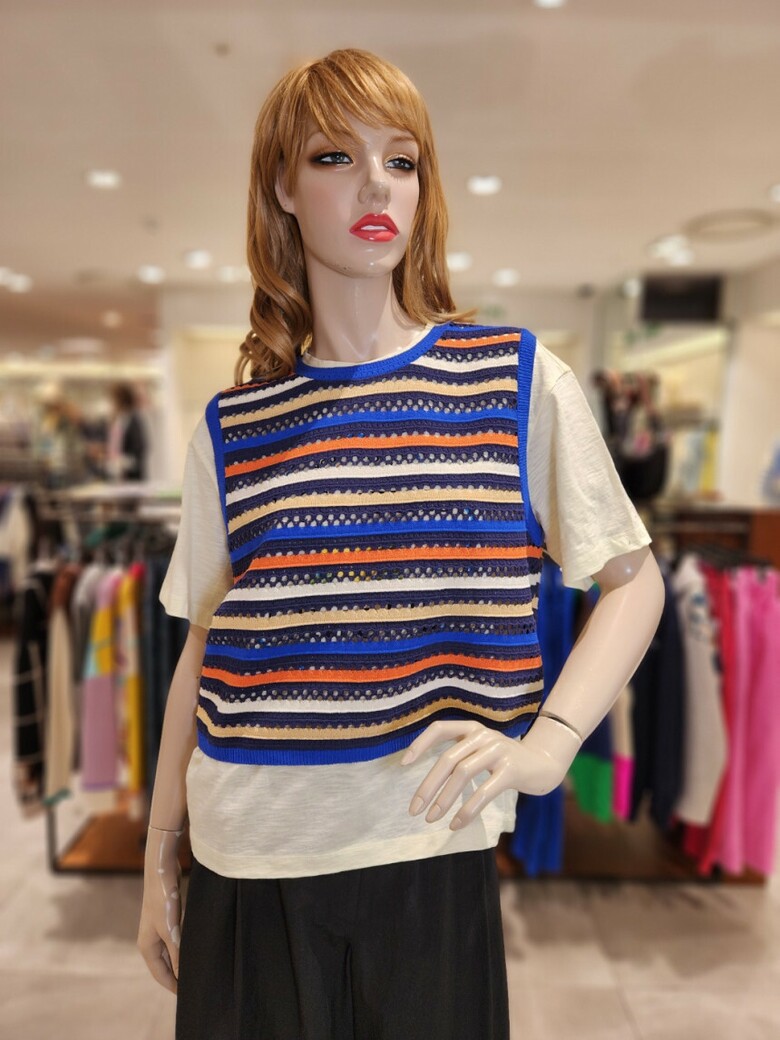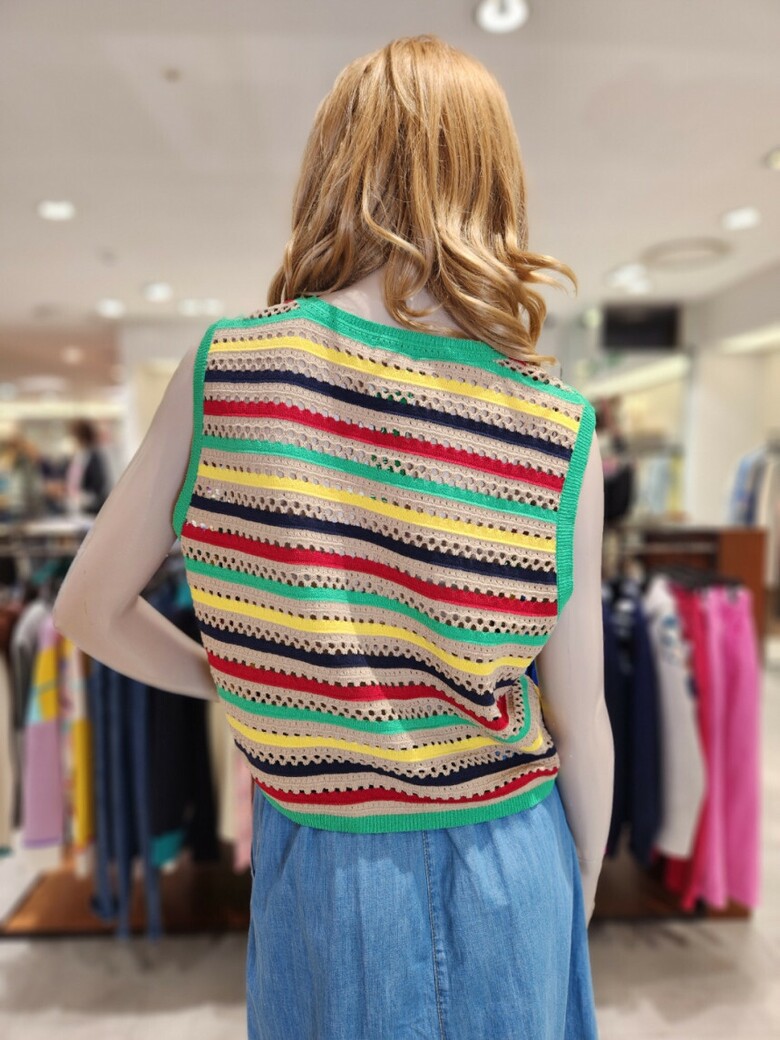 굵은 짜임과 컬러 스트라이프 패턴이 예쁘게 나온 조끼입니다