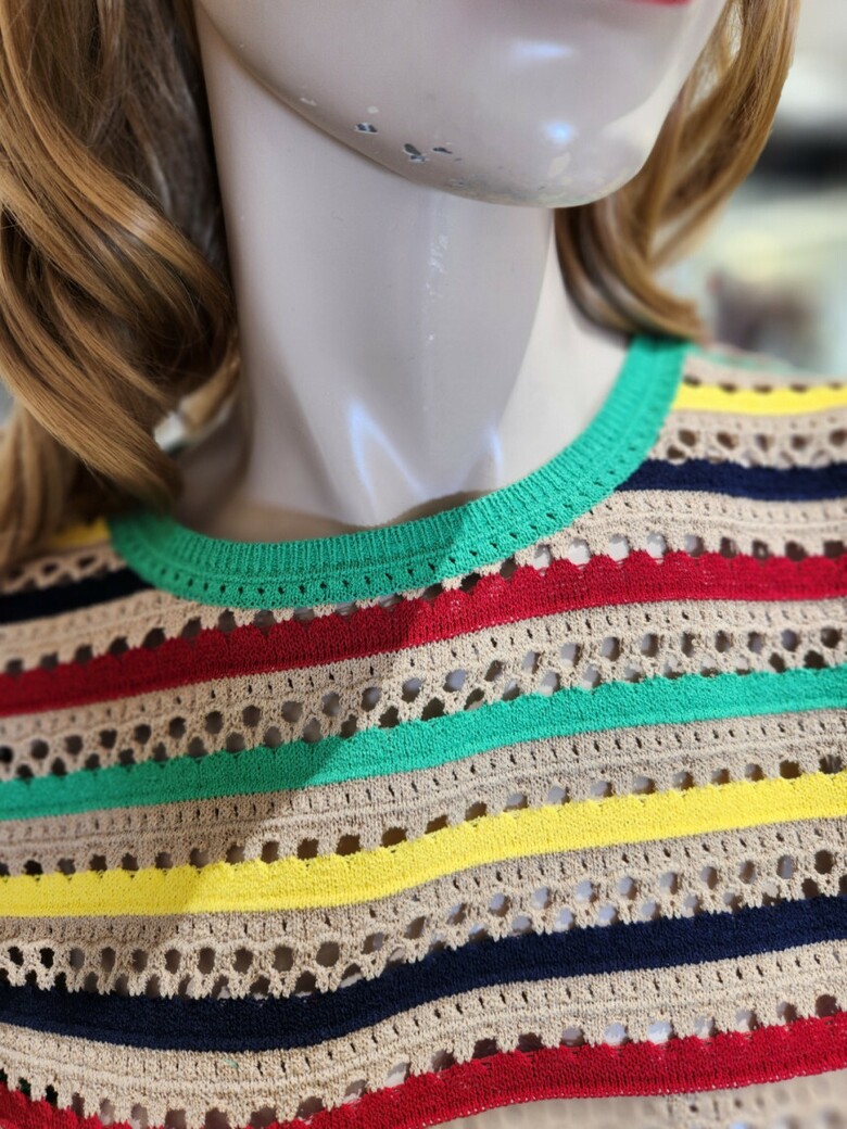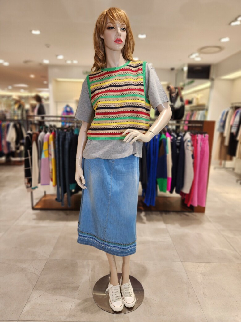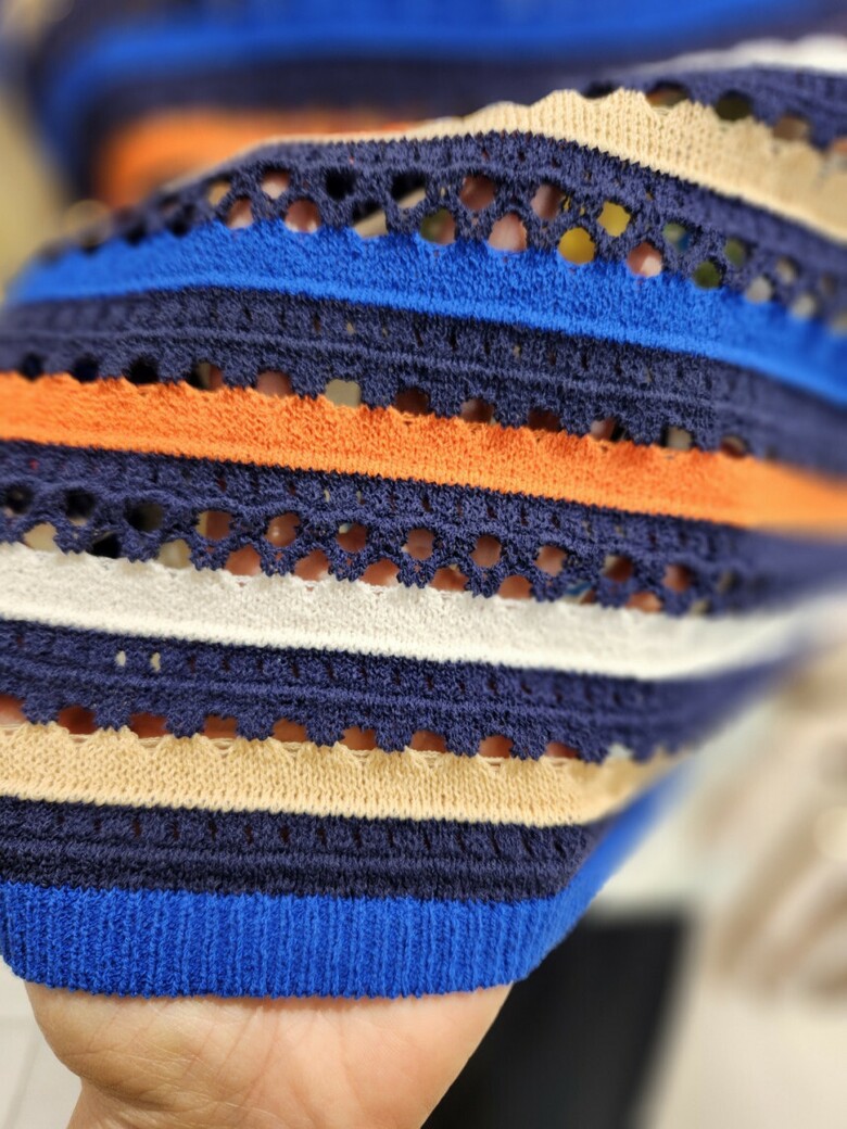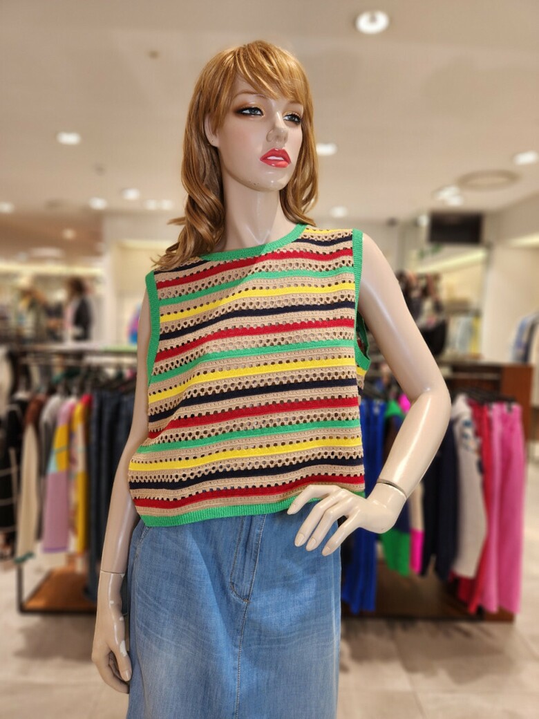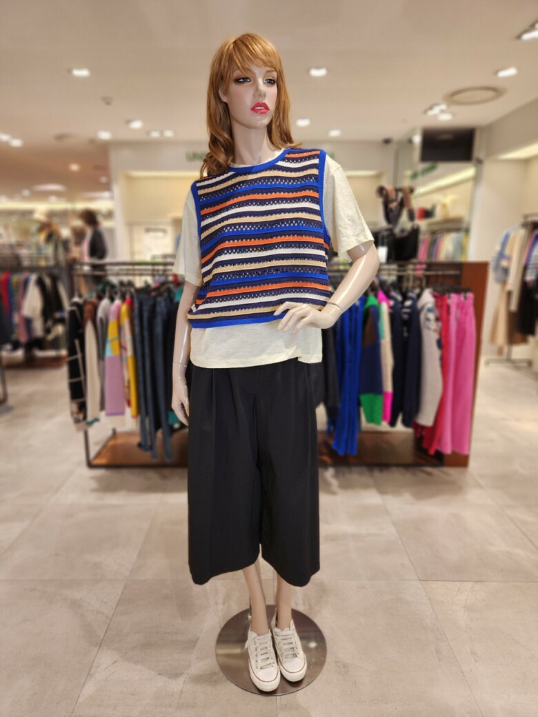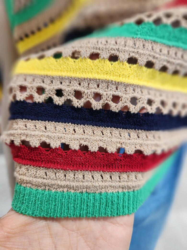 굵은 짜임과 컬러 스트라이프 패턴이 예쁘게 나온 조끼입니다