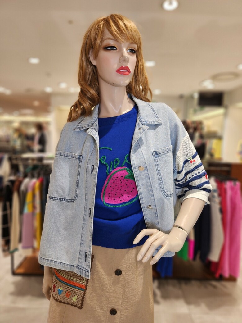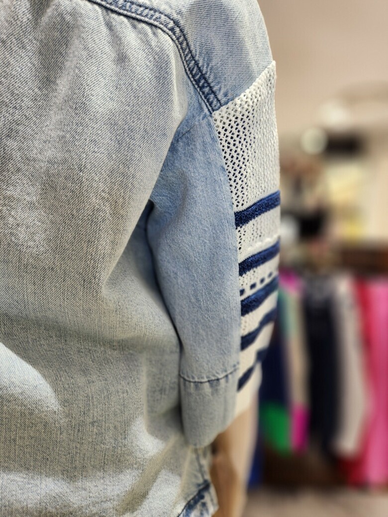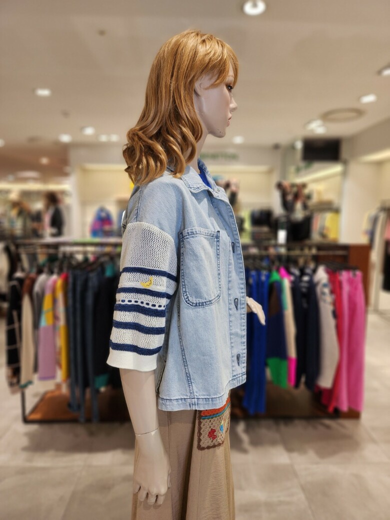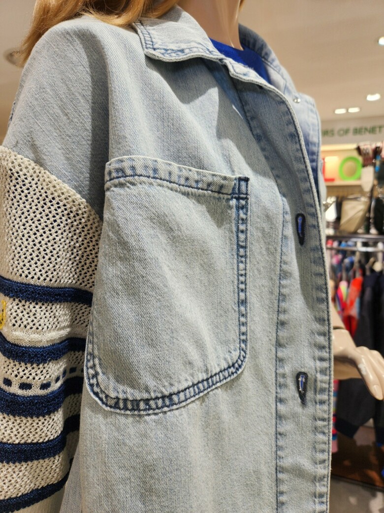 베네통 니트배색 데닙블라우스 BABLA2531