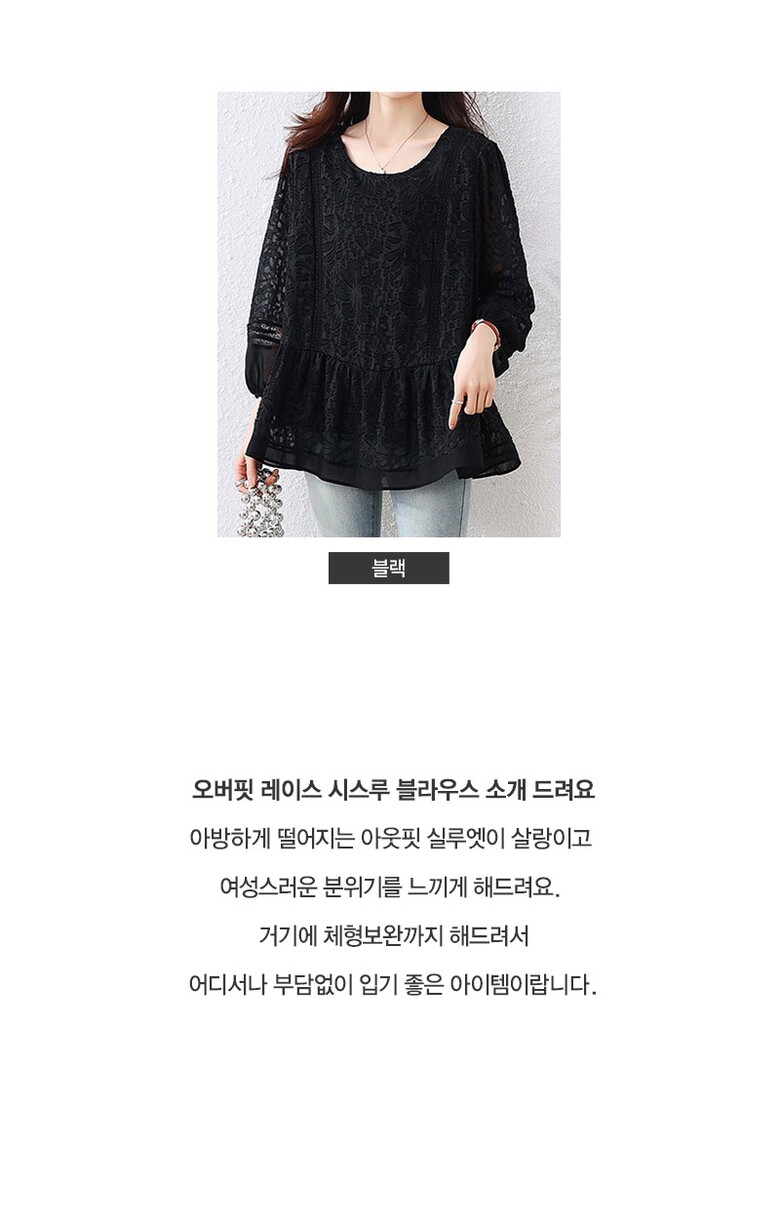 [~99까지]빅사이즈 노프 플라워 레이스 시스루 블라우스