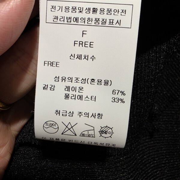 | 1. 제품 소재 (섬유의 조성 또는 혼용률을 백분율로 표시, 기능성인 경우 성적서 또는 허가서) | 레이온 67% 폴리에스터 33% |