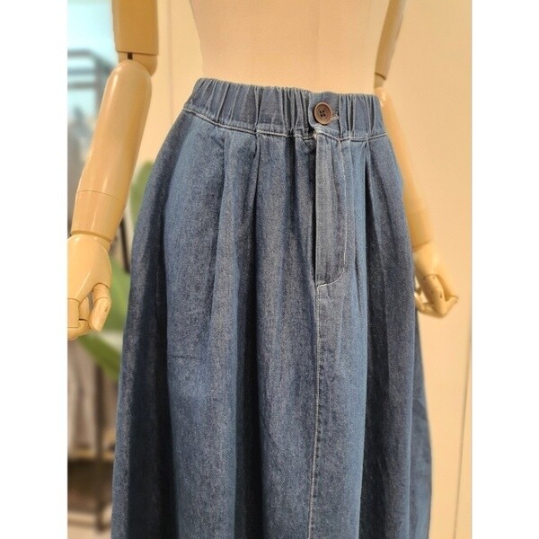 KESKP303_버튼 밴딩 A라인 청치마 DL