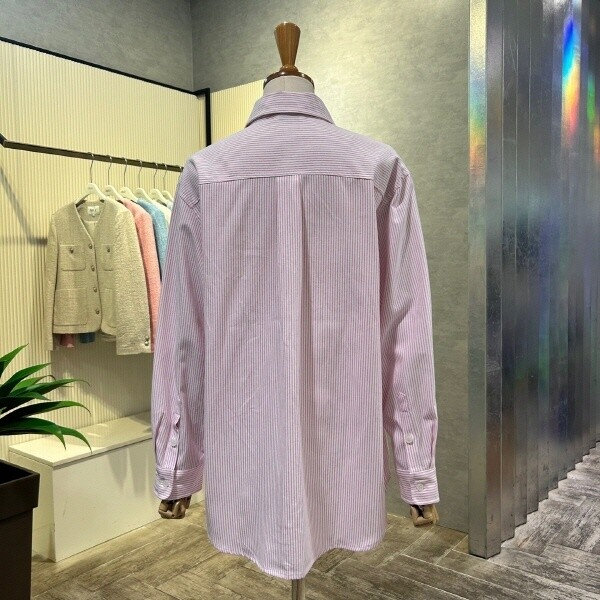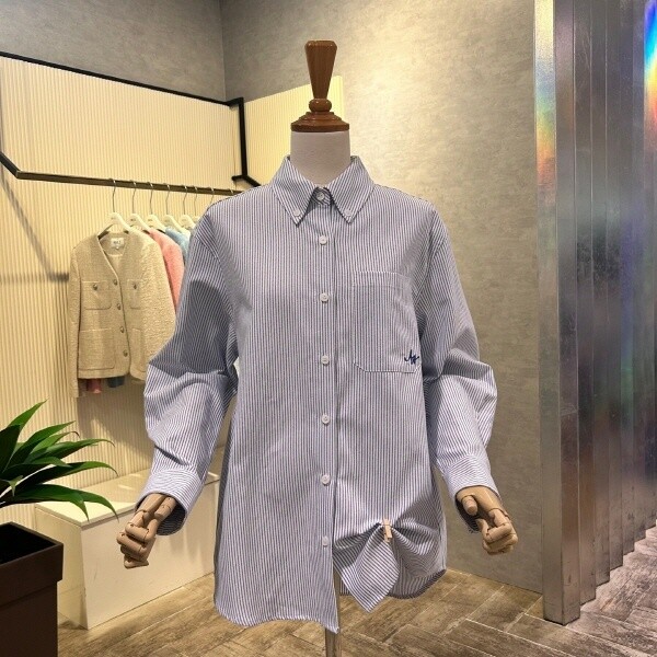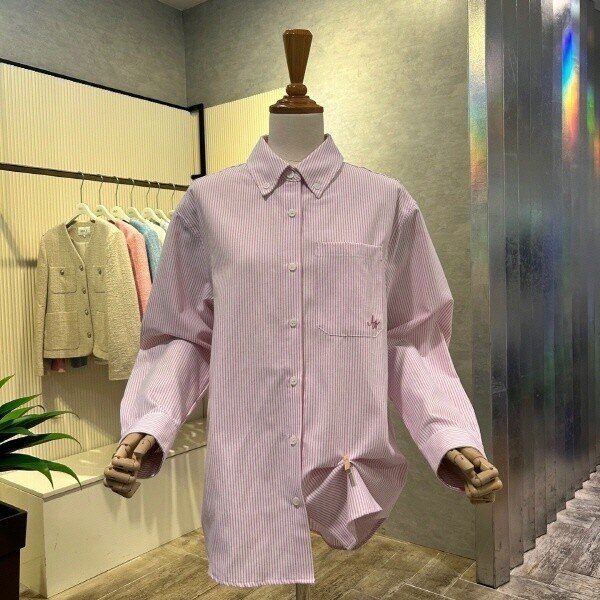 2025년 s/s?신상?박시 언발 스트라이프 셋업 셔츠?입니다. 여성스러운 디자인이 포인트 아이템 입니다?