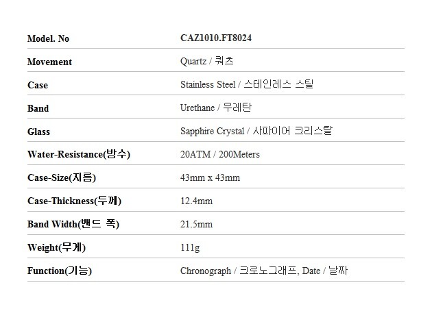 [명품] CAZ1010.FT8024 남성 우레탄밴드 시계