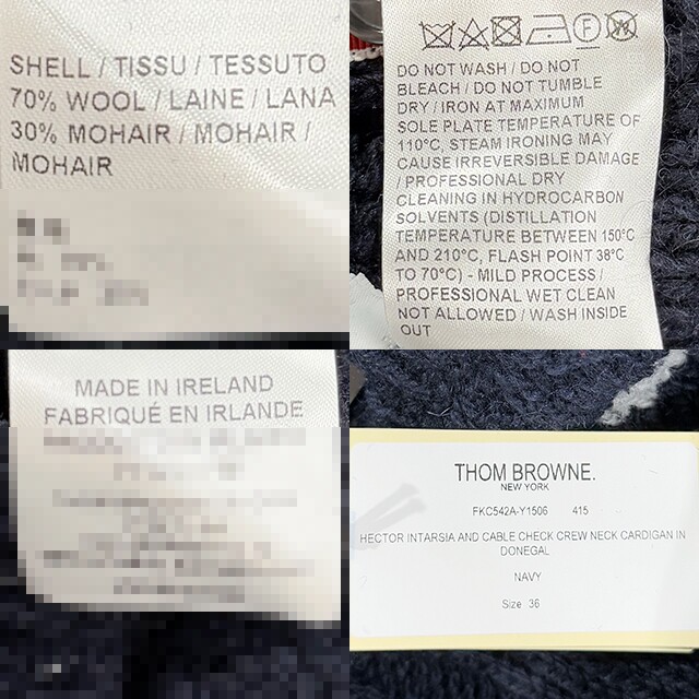 - #리본즈코리아 #FKC542AY1506415 #[명품] #25SS #톰브라운 #여성 #체크 #도네갈 #헥터 #가디건 #/ #네이비 #FKC542A #Y1506 #415 #의류 #니트/가디건
