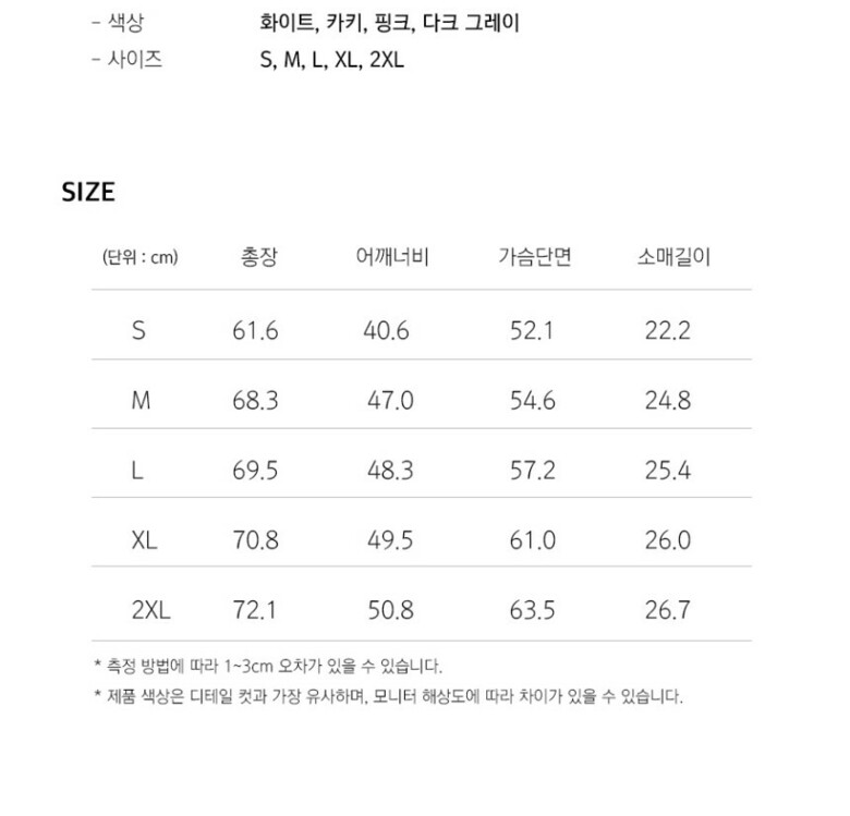 | 2. 색상 | 카키,다크 그레이,화이트,핑크 |