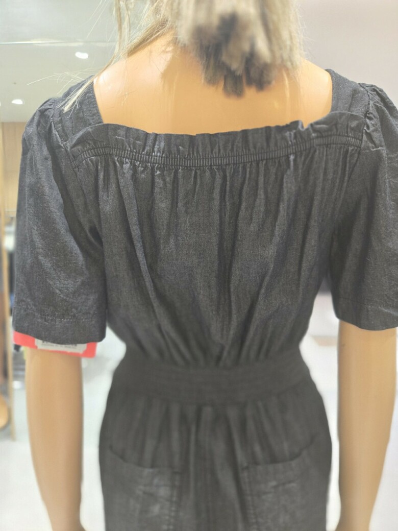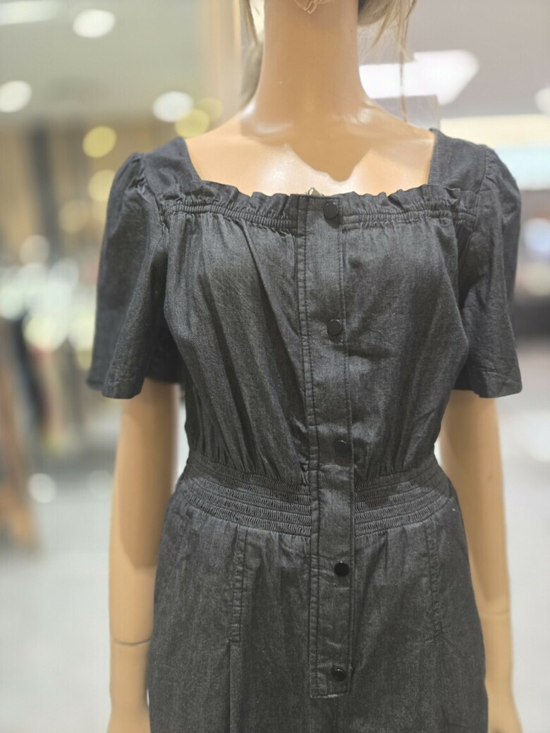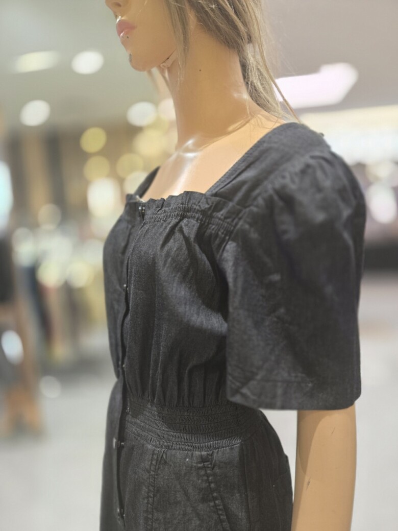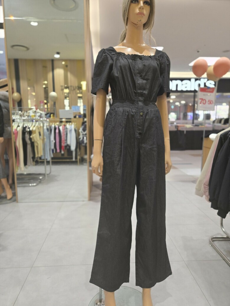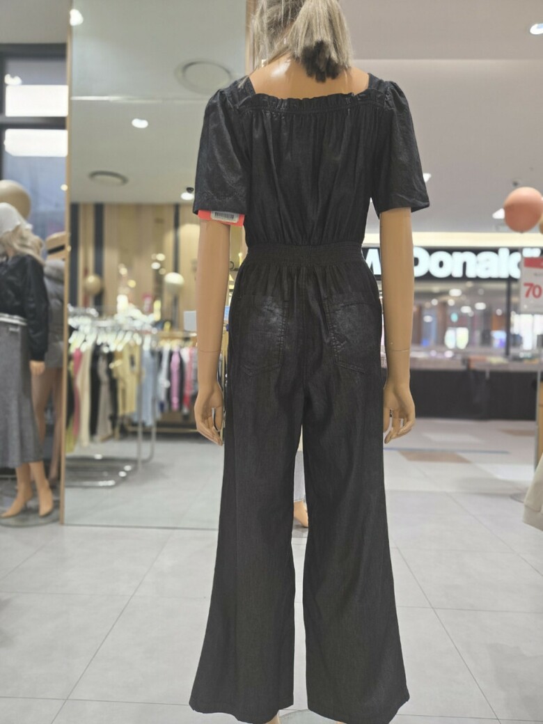 볼륨소매 스퀘어넥 점프슈트 데님 팬츠 EQ2DP-563