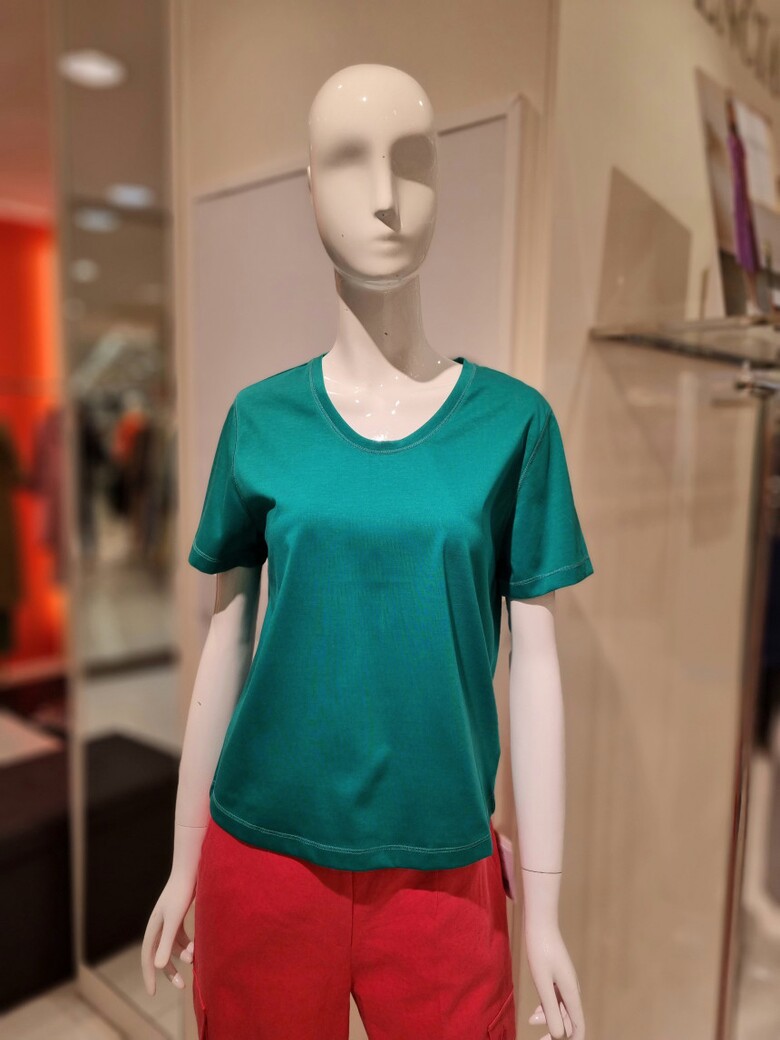 U라인넥으로 반팔 레리온,면혼방 베이직한 티셔츠입니다.