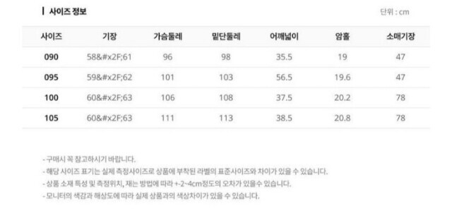 | 6. 세탁방법 및 취급시 주의사항 | 상품상세참조 |