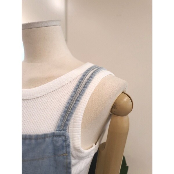 데님으로 캐주얼하면서 스퀘어 넥라인으로 귀여운 분위기를 가진 상품입니다.