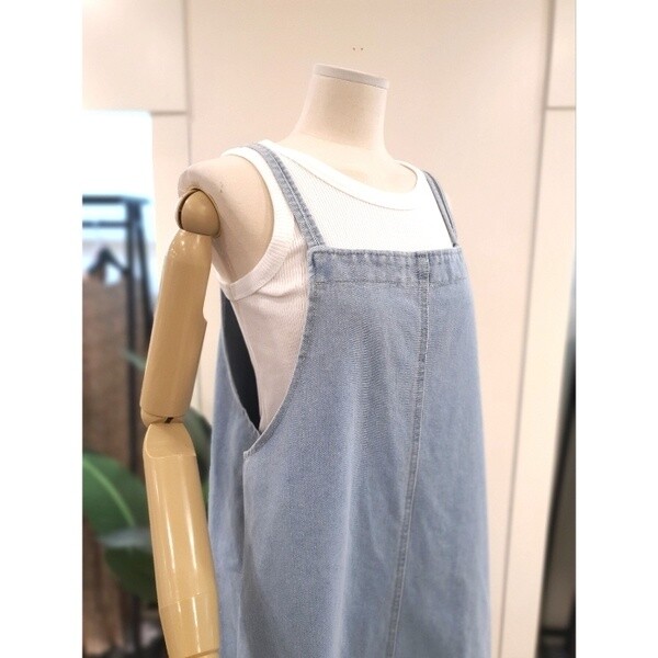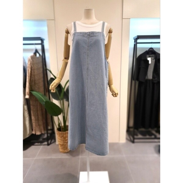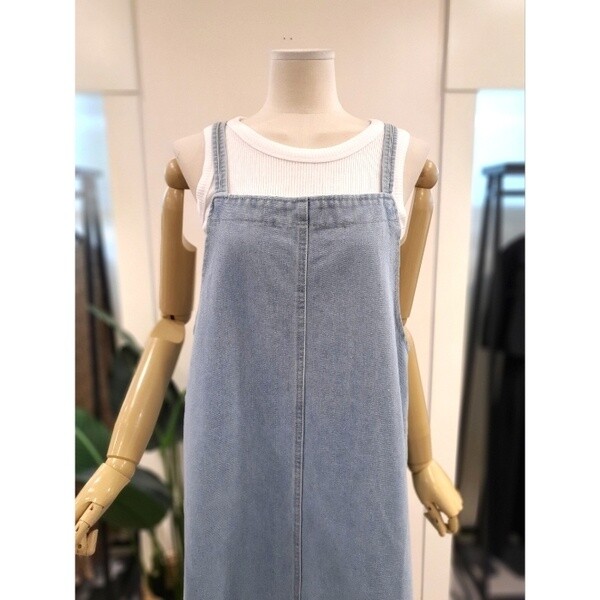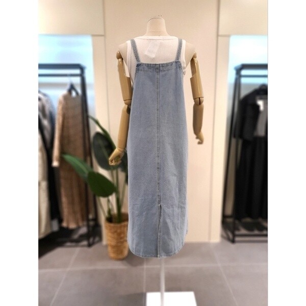 KOOPP308BL_더블 스트랩 데님 롱 원피스 BL