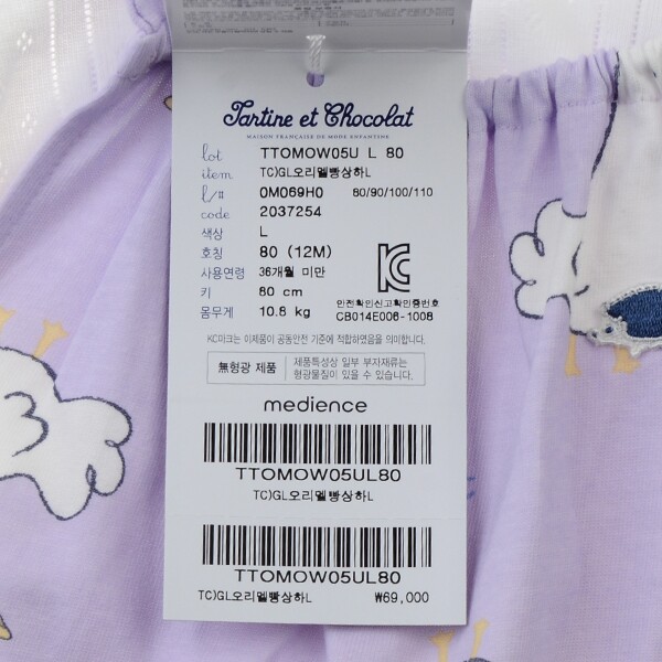 | 6. 세탁방법 및 취급시 주의사항 | 단독세탁, 삶지 마십시오, 기계건조금지, 주의! 작은 부품이 탈락되면 삼킬 수 있음 |