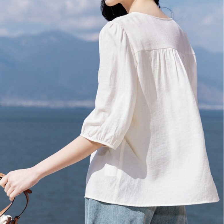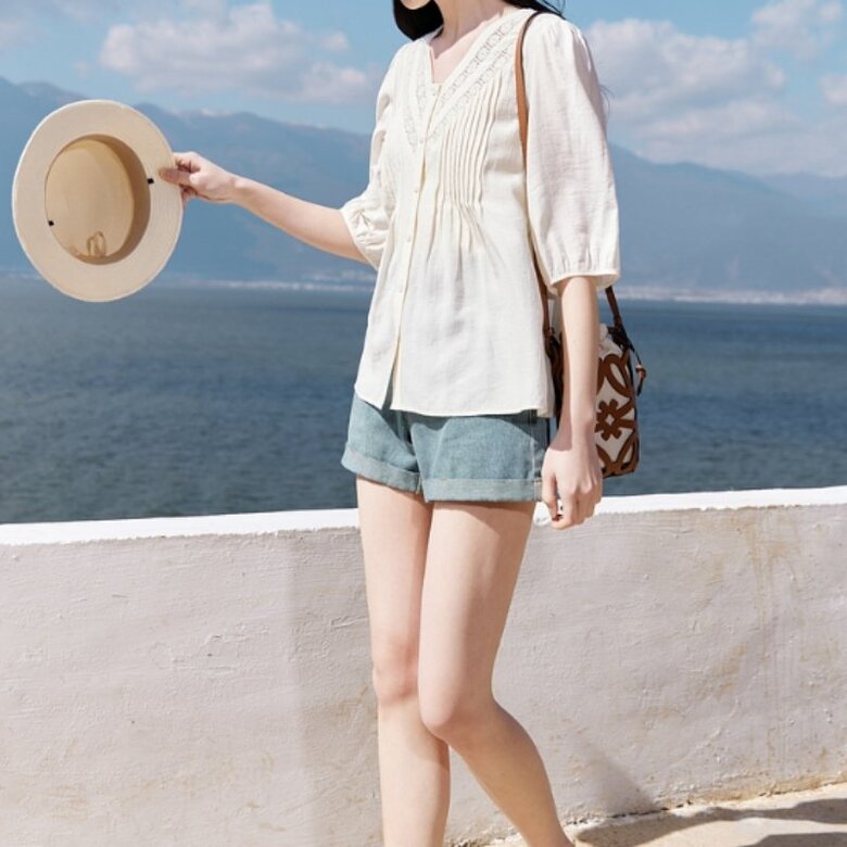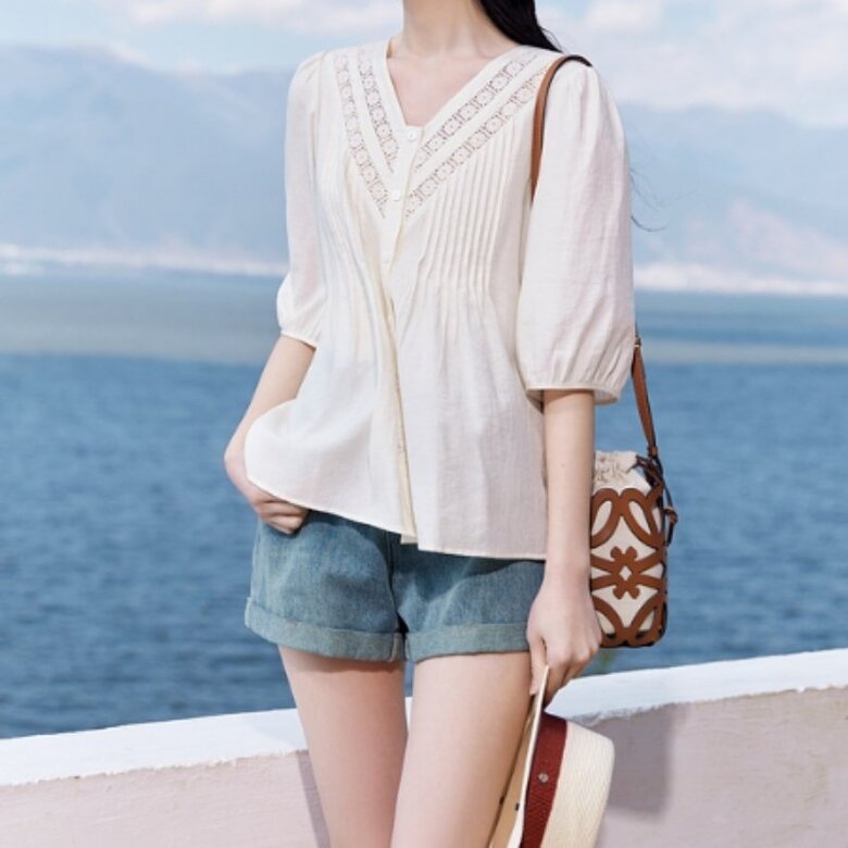 데이즈 V넥 화이트 퍼프 블라우스_250405_SY200
