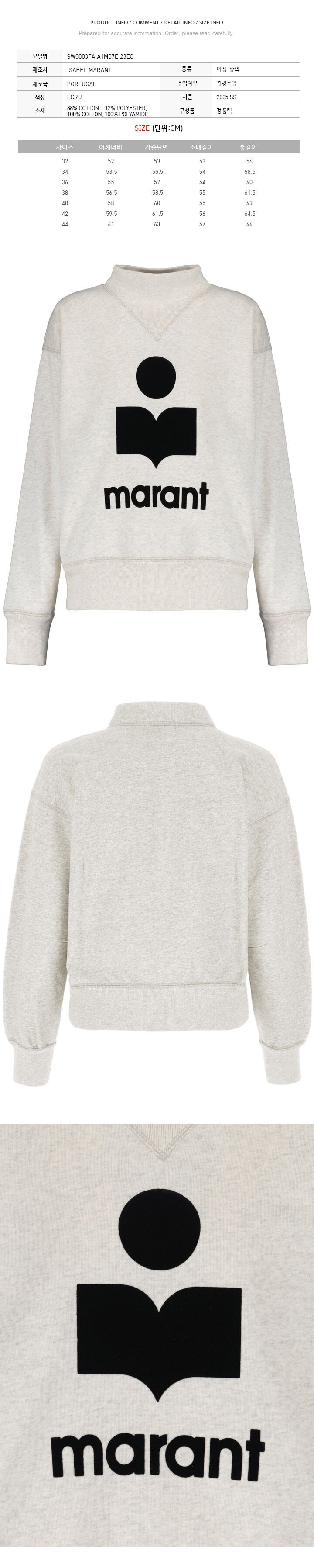 - #리본즈코리아 #1835041-557448659 #[명품] #이자벨마랑 #25SS #MOBY #벨벳 #로고 #맨투맨 #에쿠르 #SW0003FA #A1M07E #23EC #여성 #의류 #상의