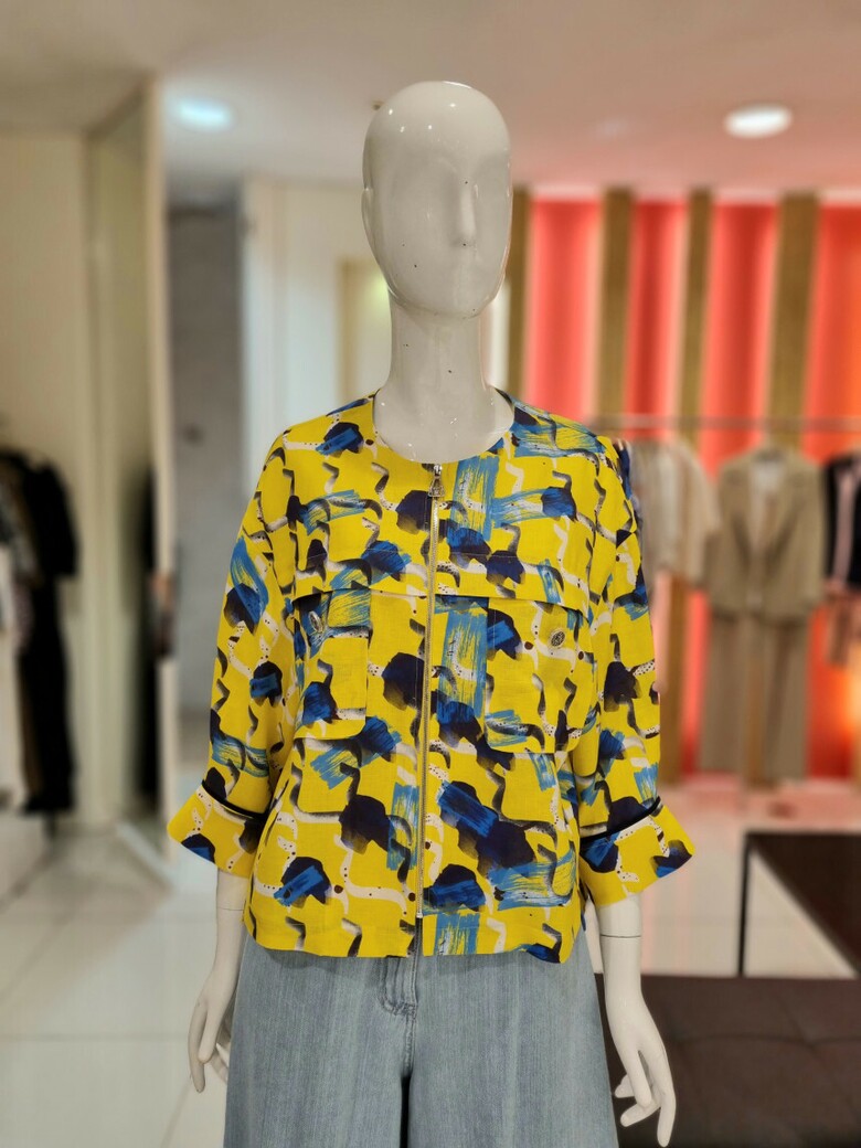 (발렌시아)프린트 린넨 집업재킷 236ML16