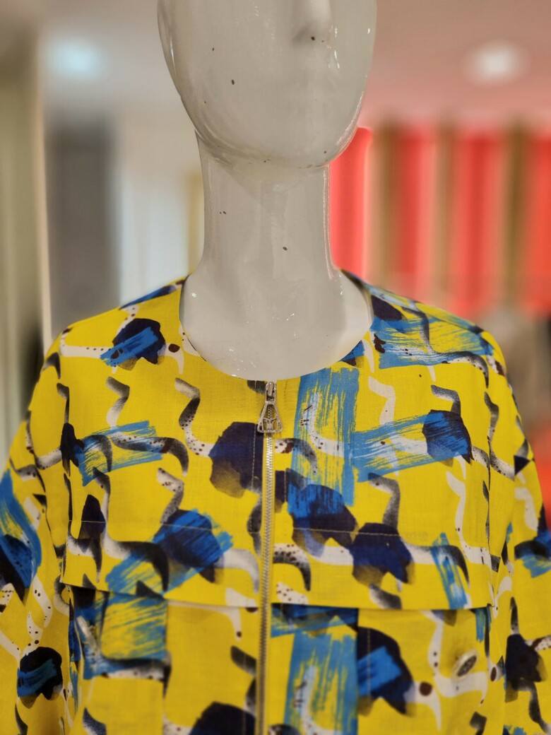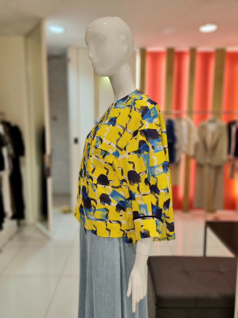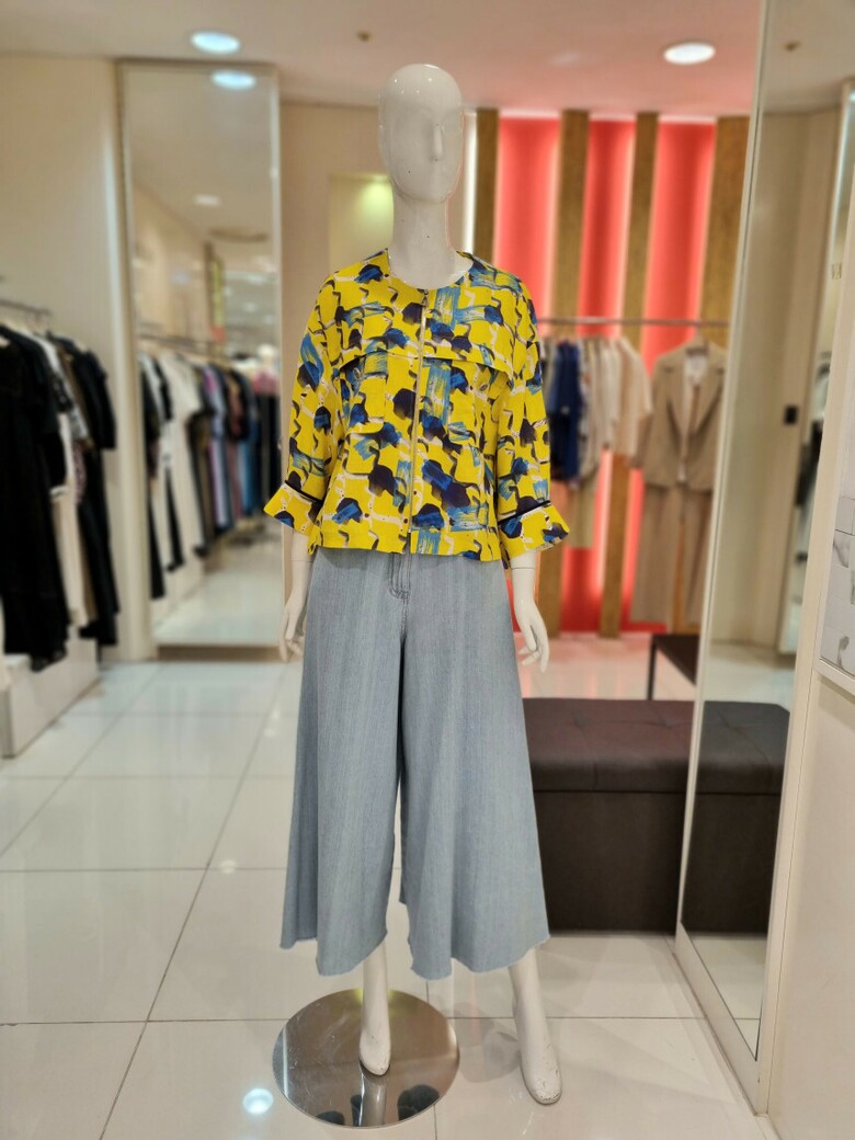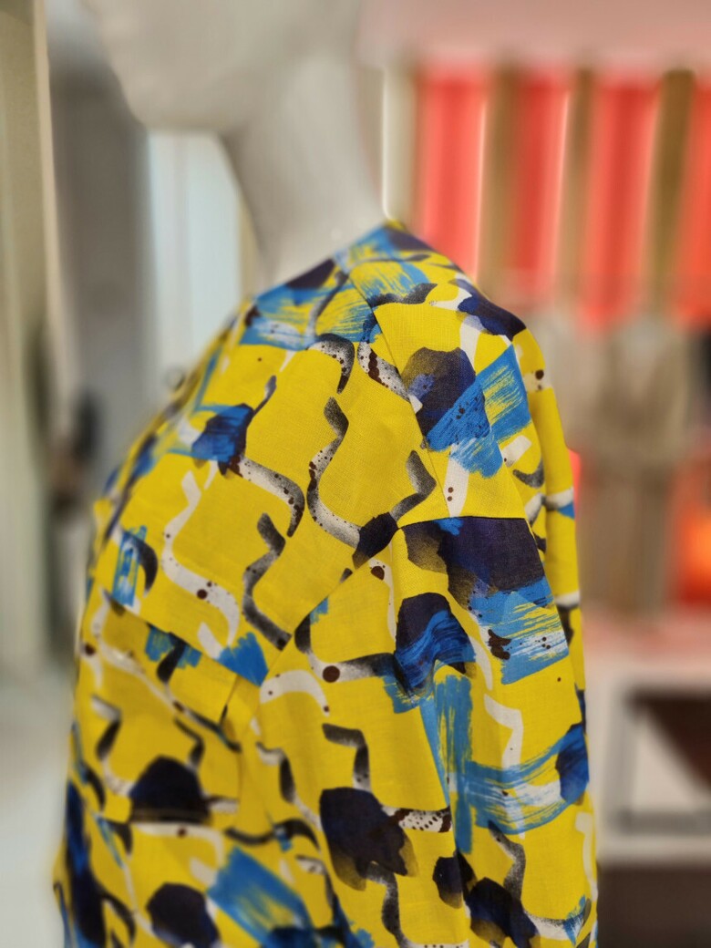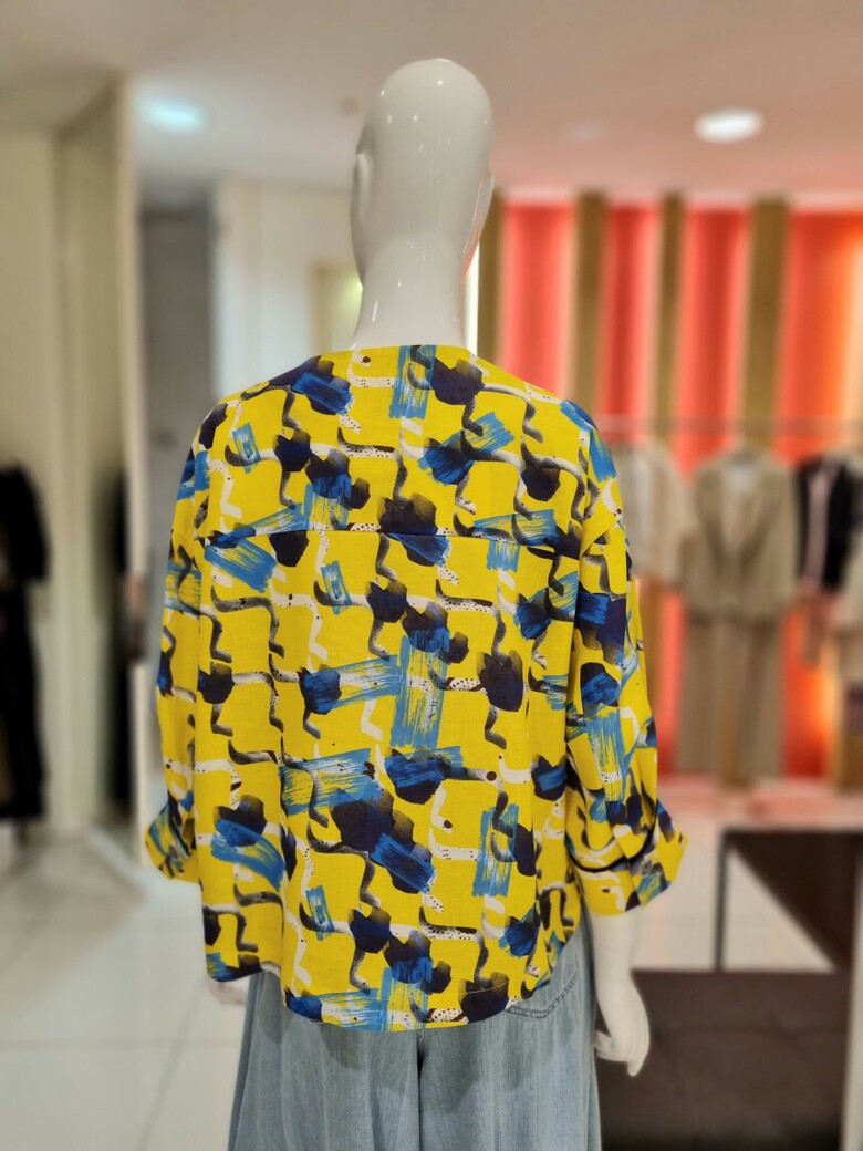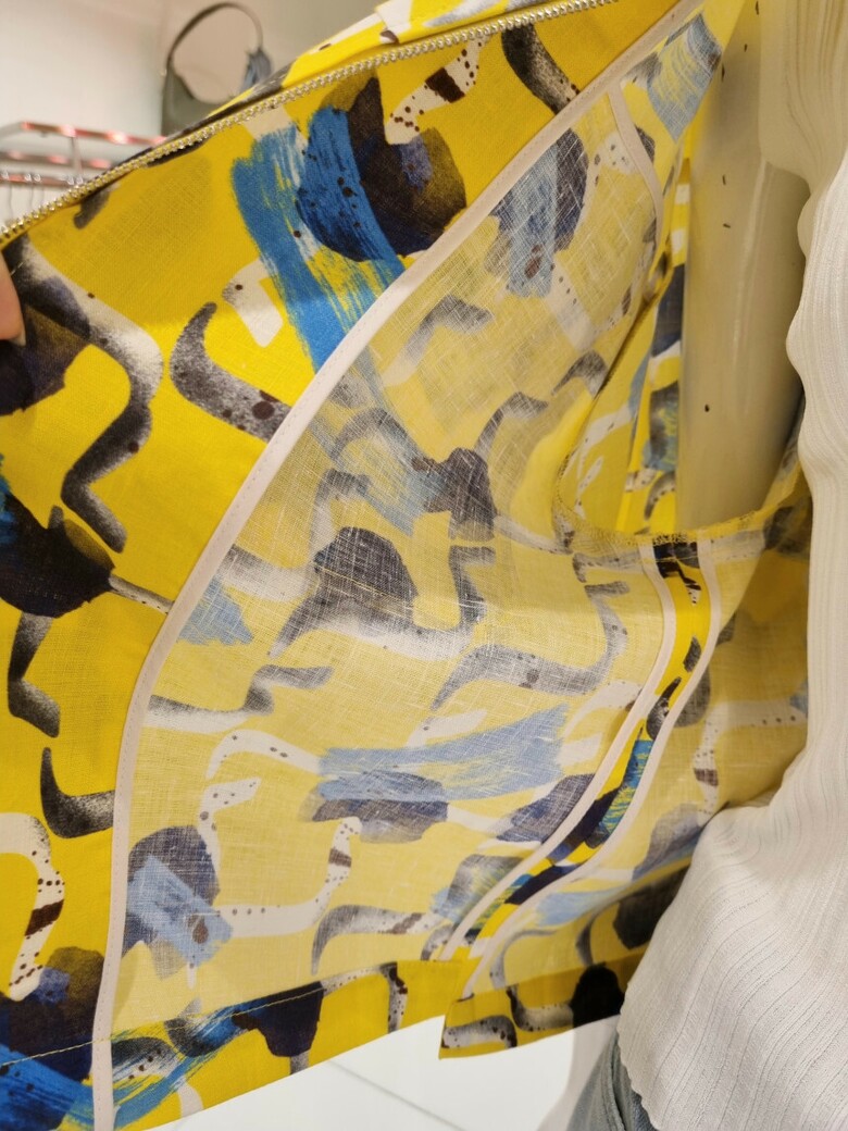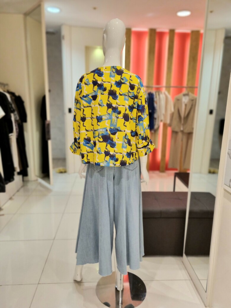 옐로우 바탕에 블루로 프린트가 시원시럽게 표현되는