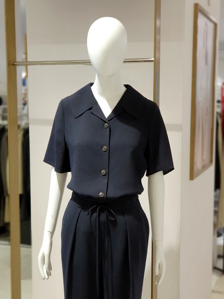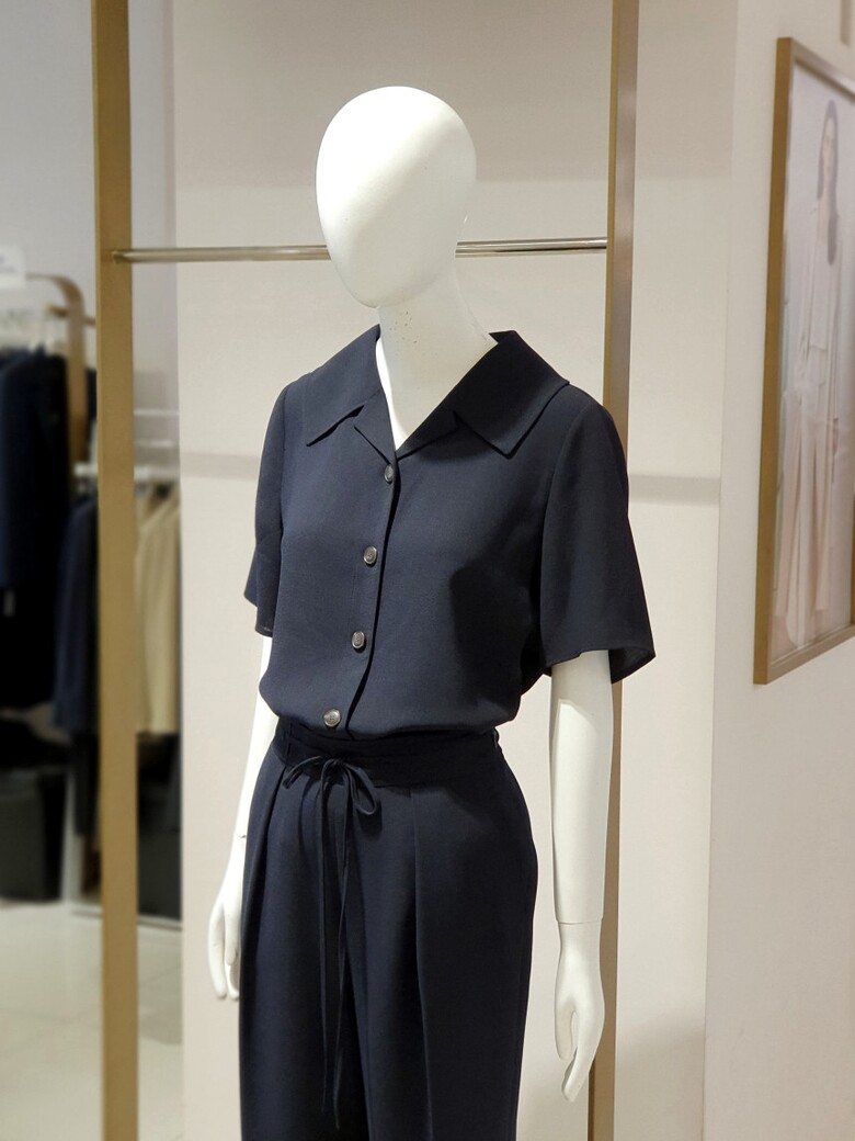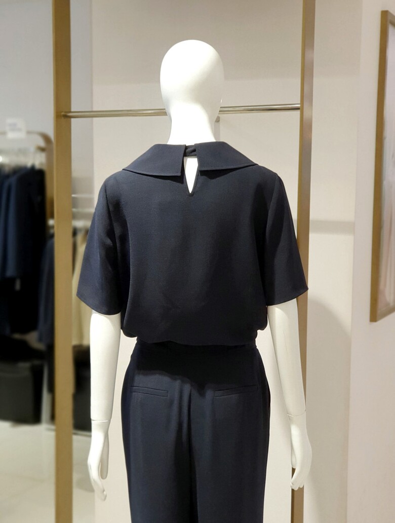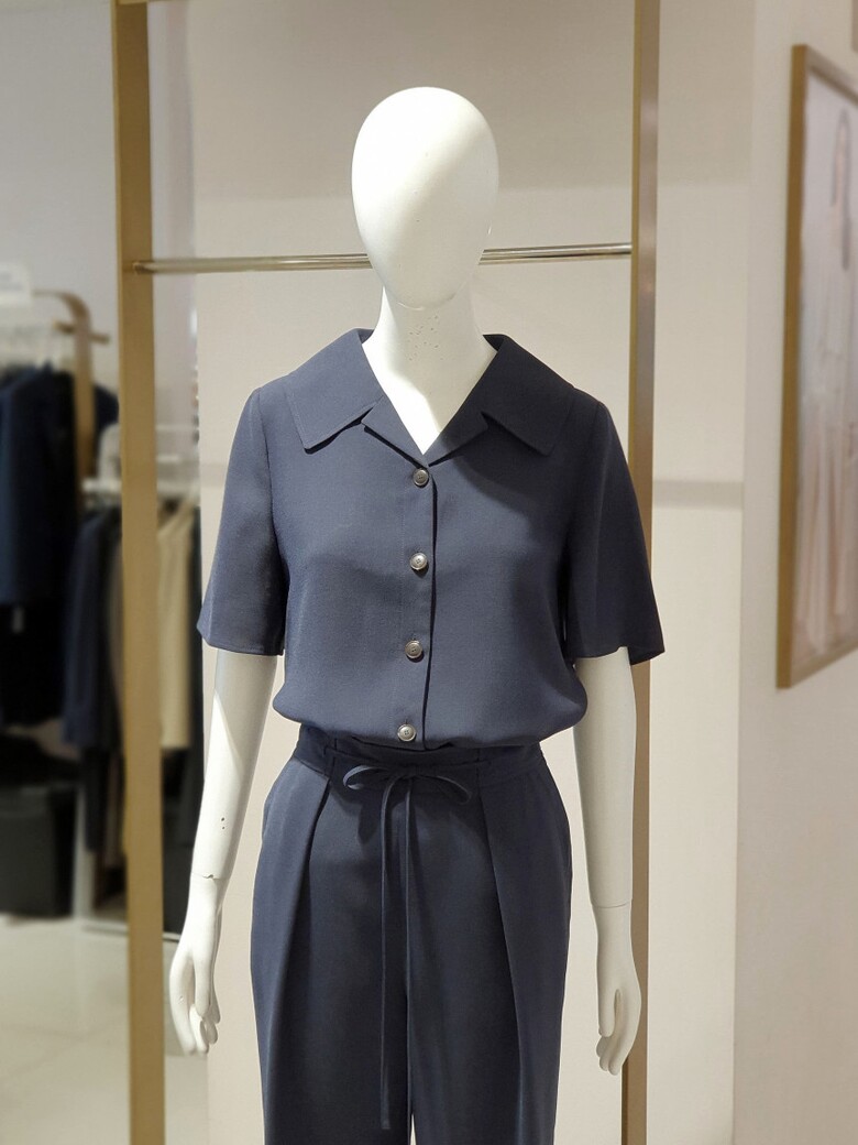 네크 뒤트임 디테일로 스타일리시한 무드의 블라우스입니다.