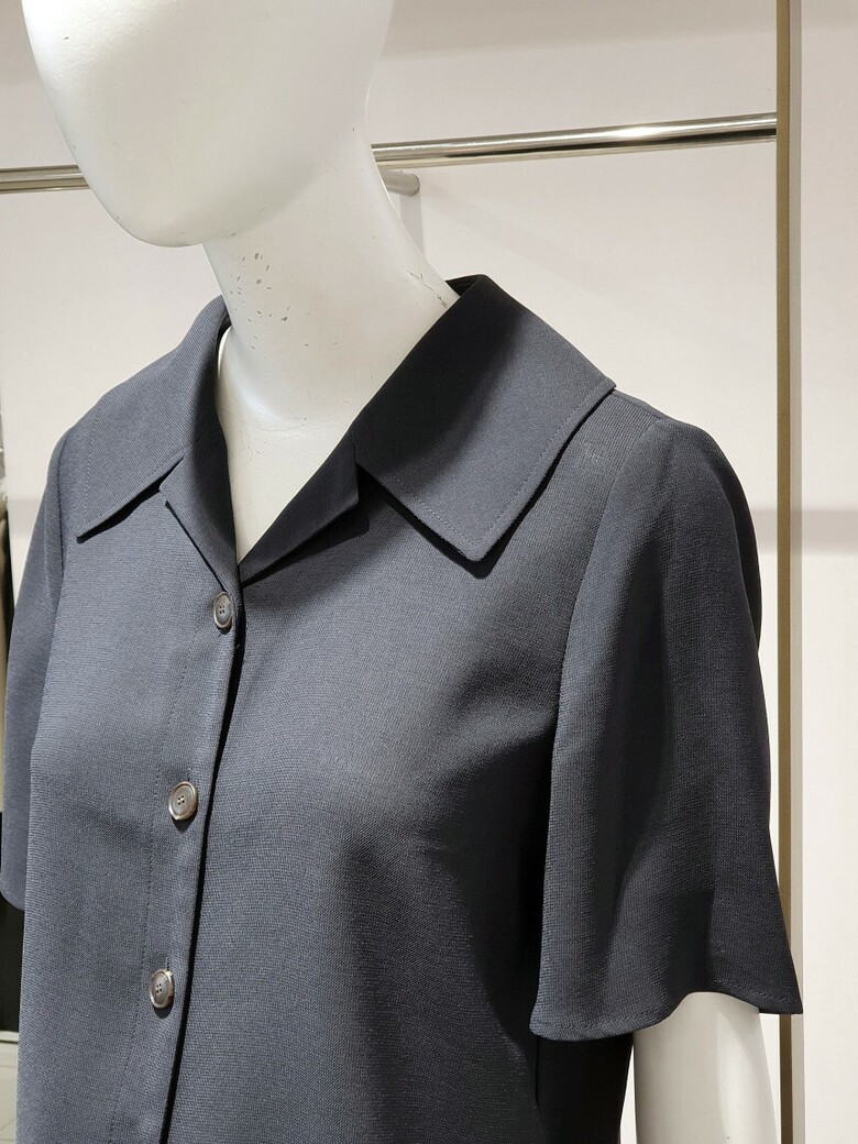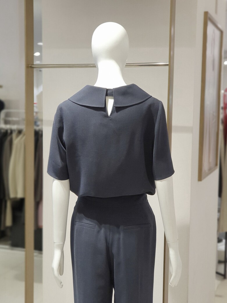 칼라 넥 라인으로 네크 맵시를 더해주며