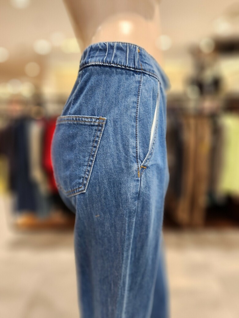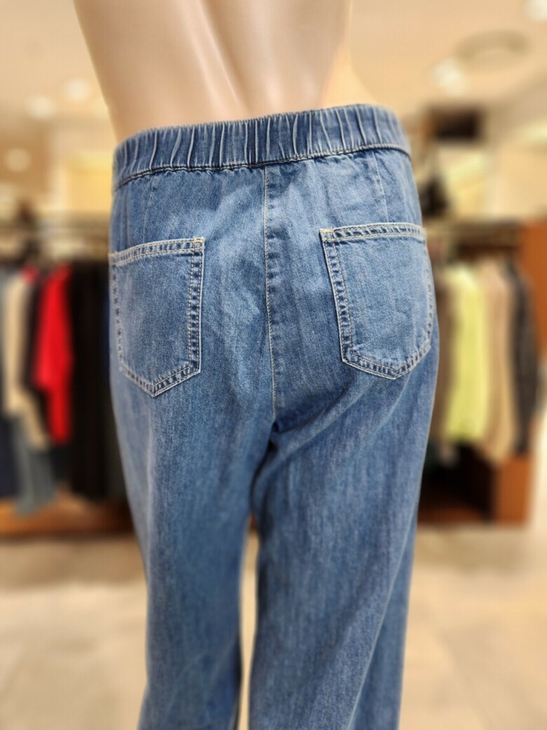 일자 통 핏에 뒤허리선 밴딩 처리가 되어 있고