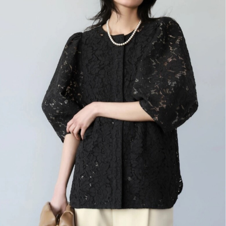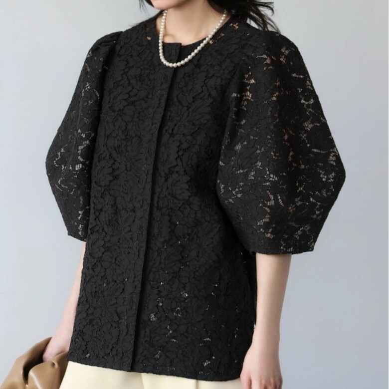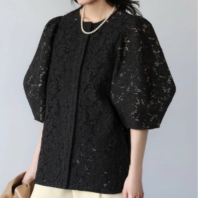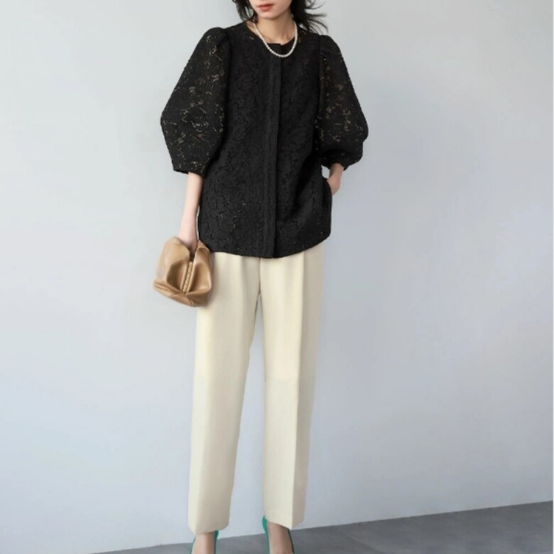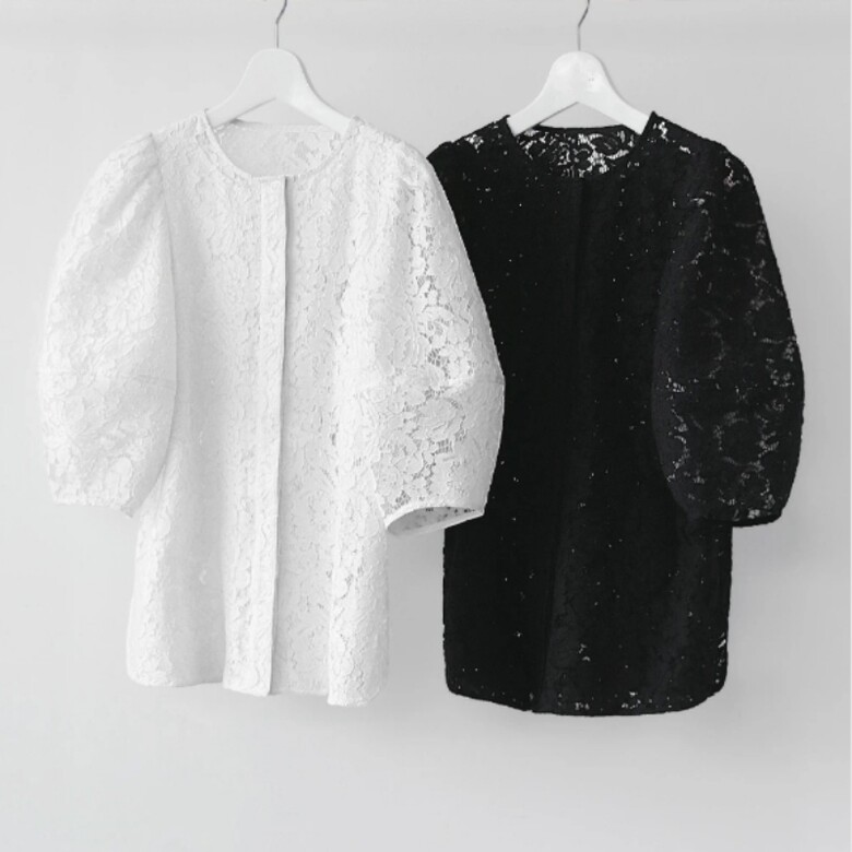 레이스 퍼프 시스루 블라우스 2COLOR_250420_SJ160