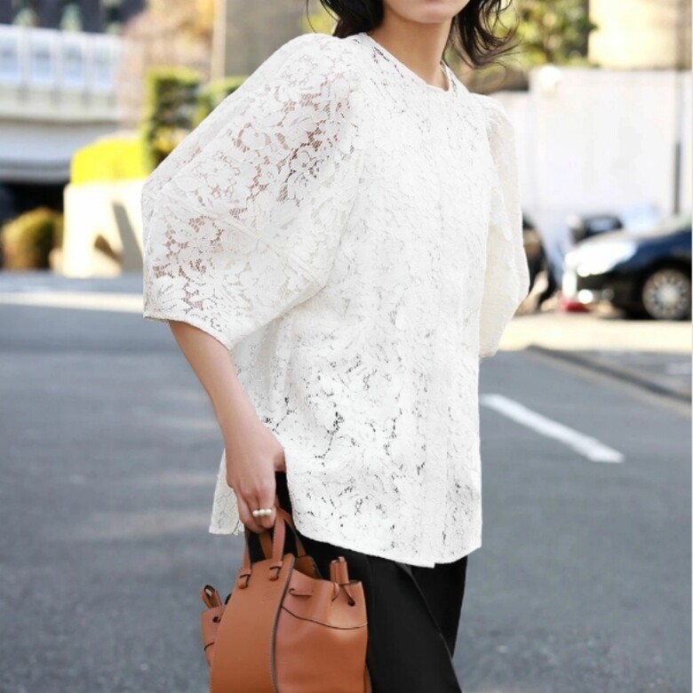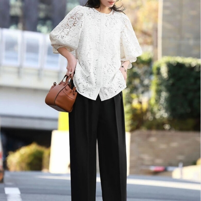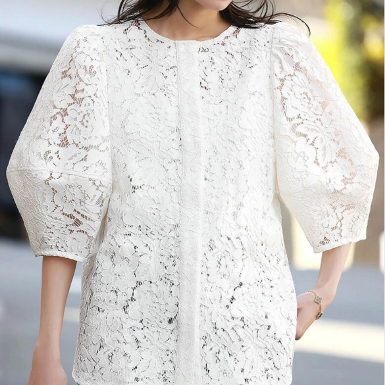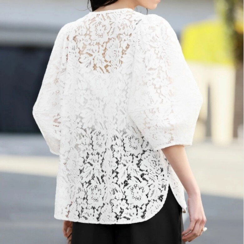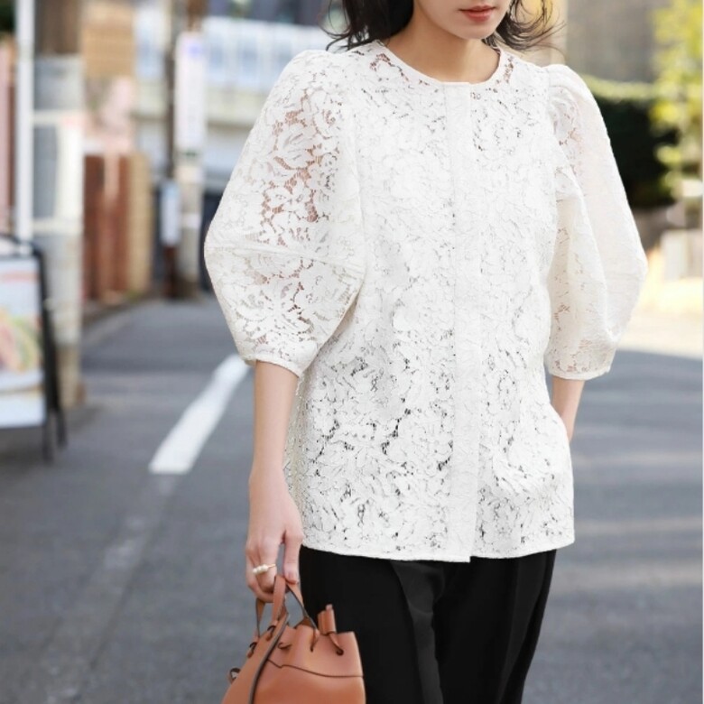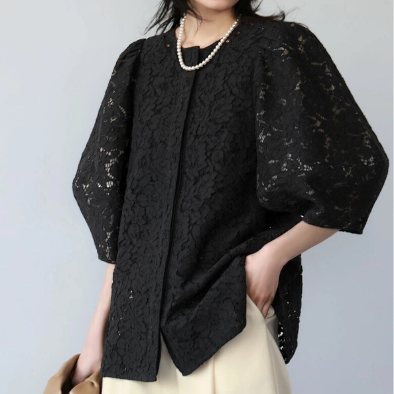 레이스 퍼프 시스루 블라우스 2COLOR_250420_SJ160