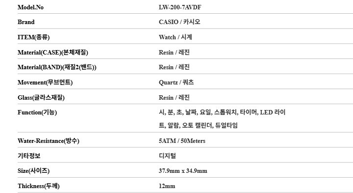 7-2. 시계 - 기능, 방수 등 WATER RESISTANCE - 5ATM(50Meters)
