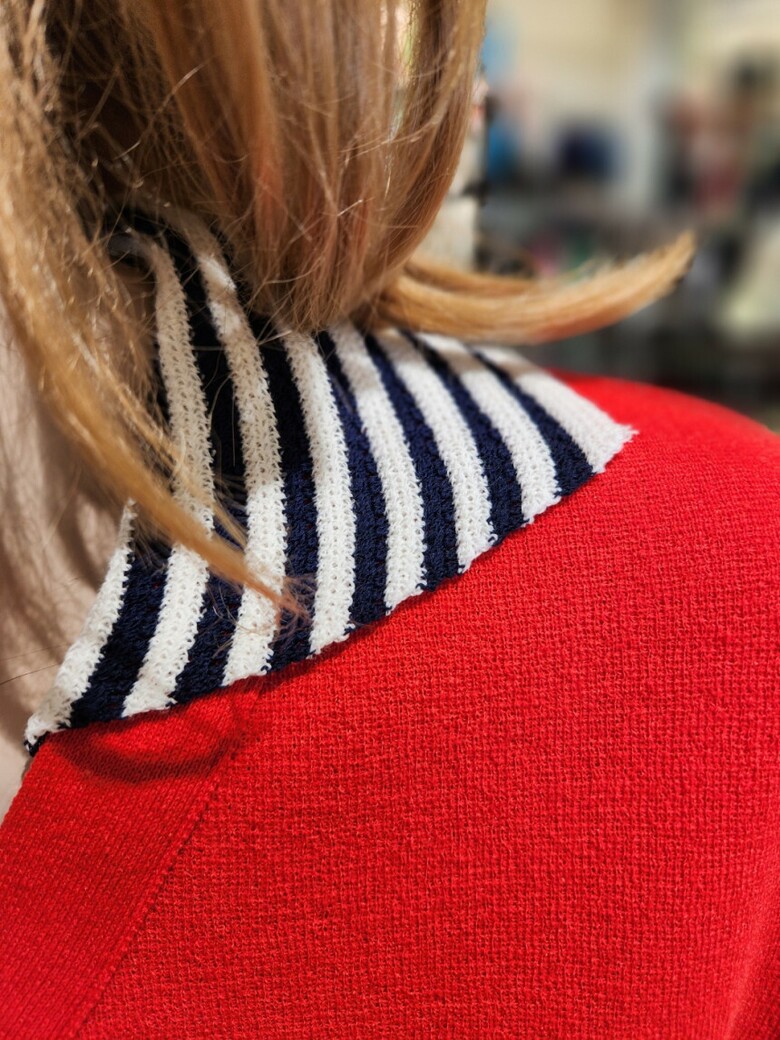 7.니트류는 자가드 프린트 기법으로 제작되어 앞부분에 예쁜 프린트처리가 되어 있습니다