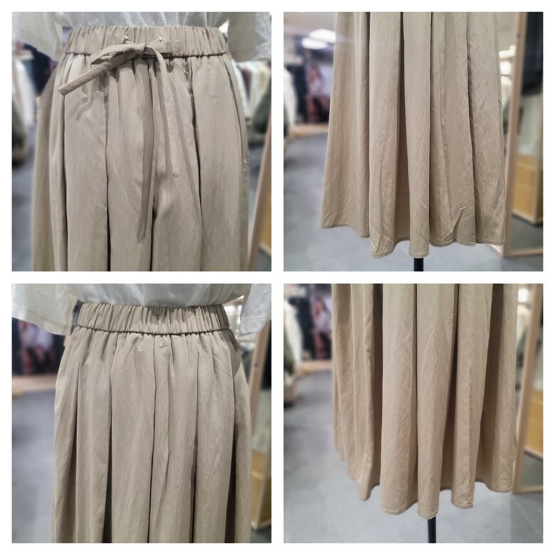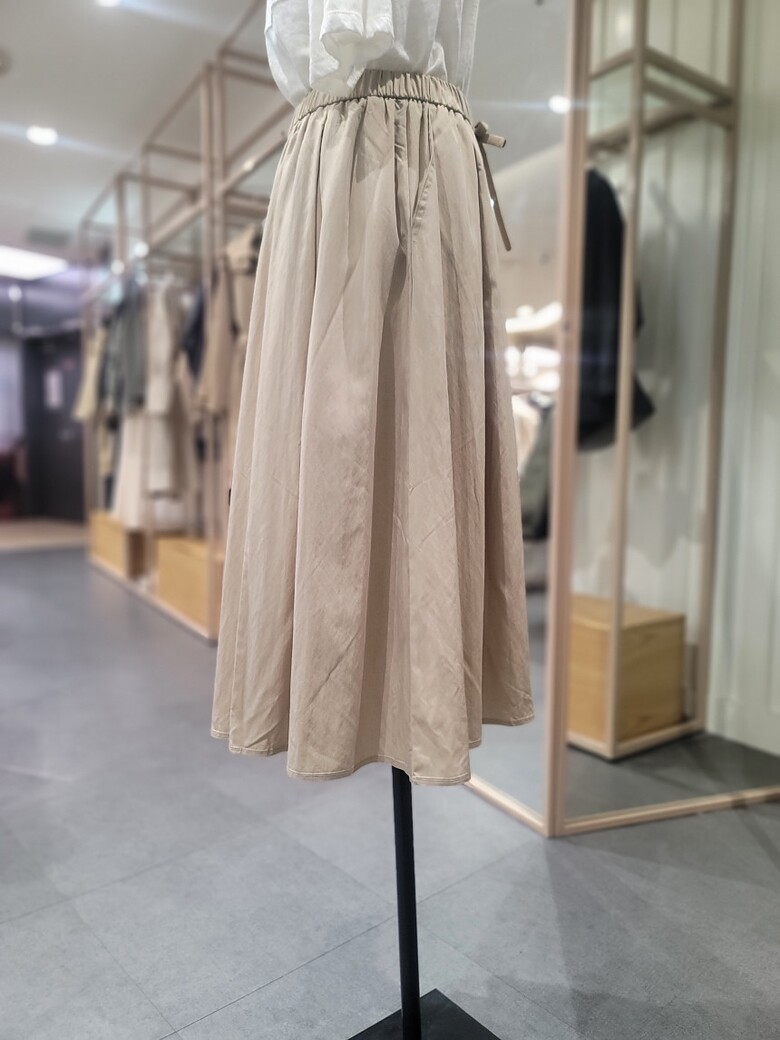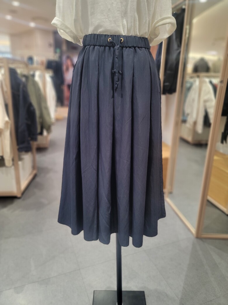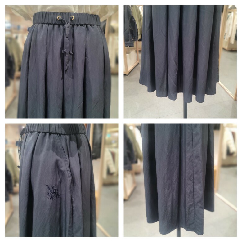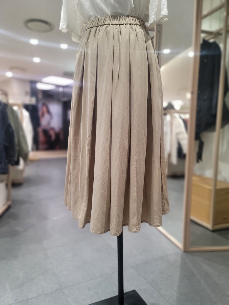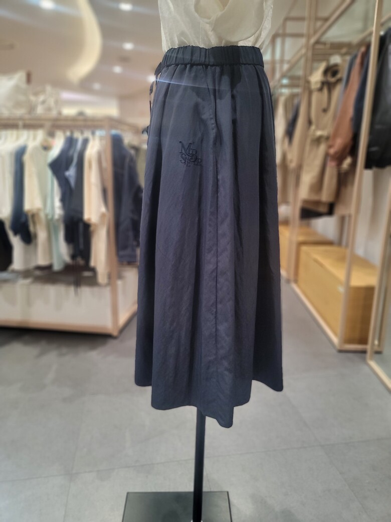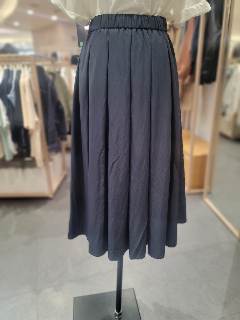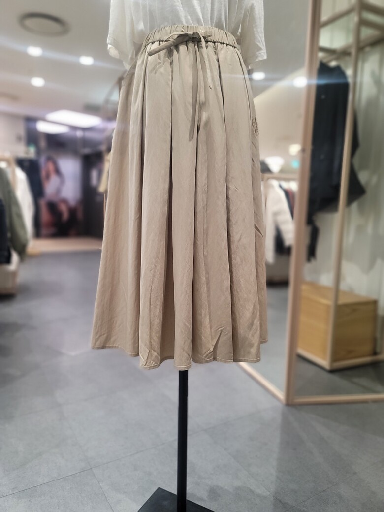[시에로] 로고자수 전체 맞주름 A라인 스커트 SJ3SKF02M