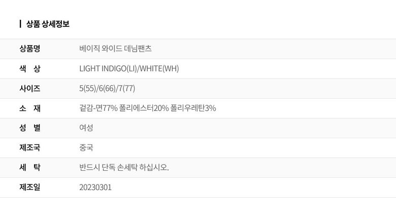 2. 색상 색상:LIGHT INDIGO(LI)/WHITE(WH)