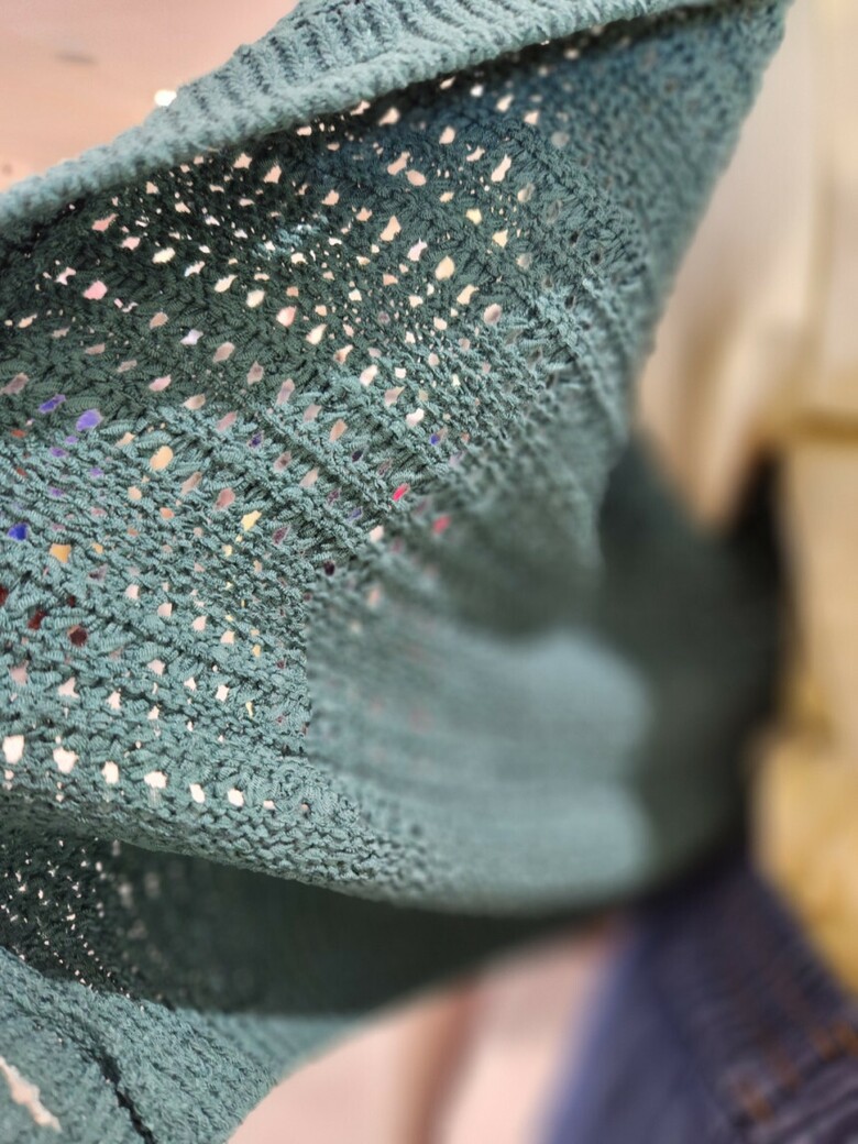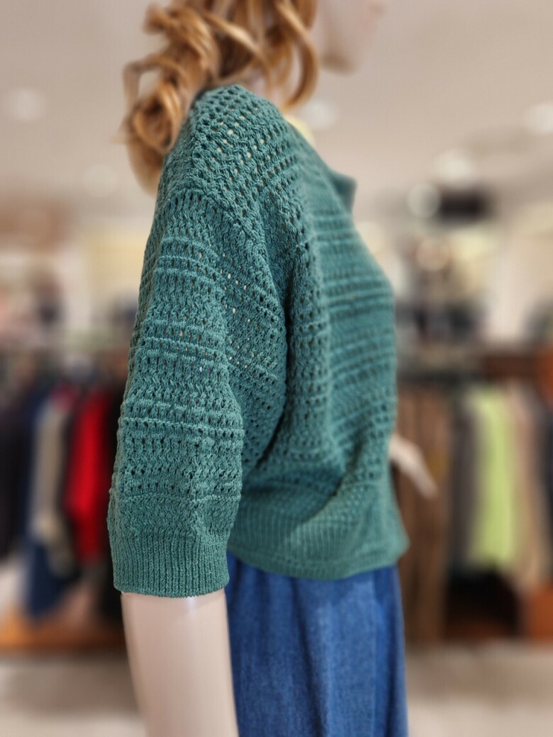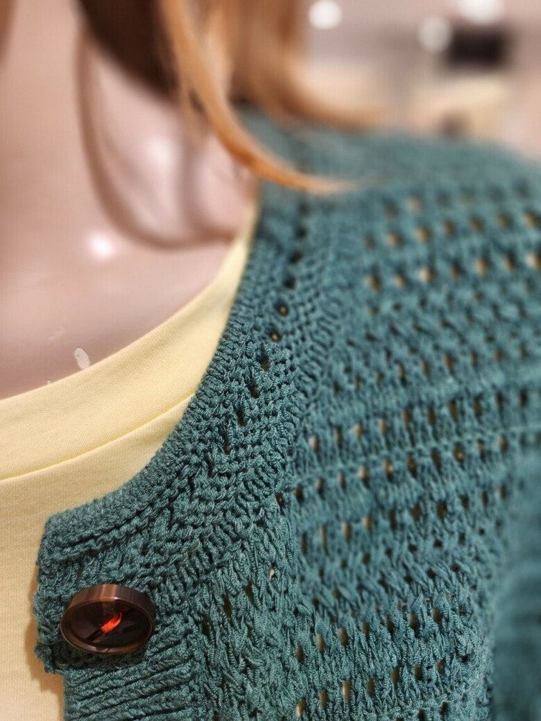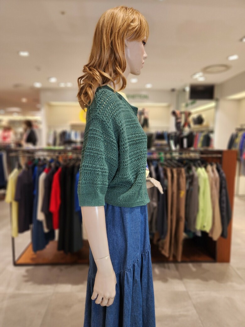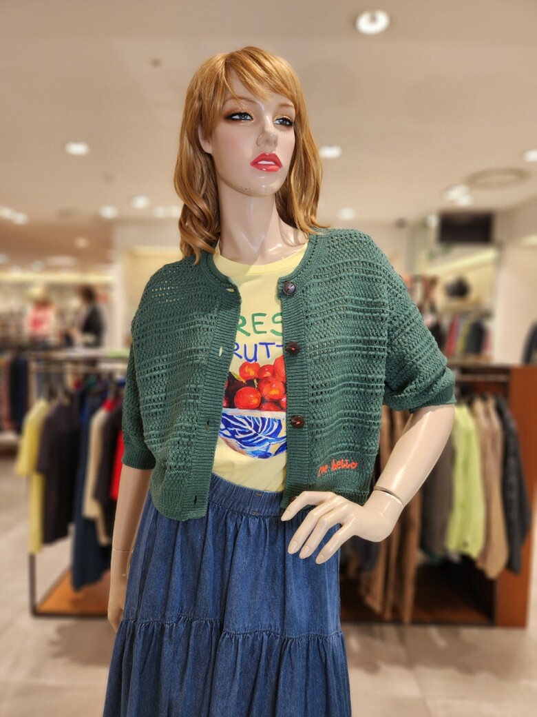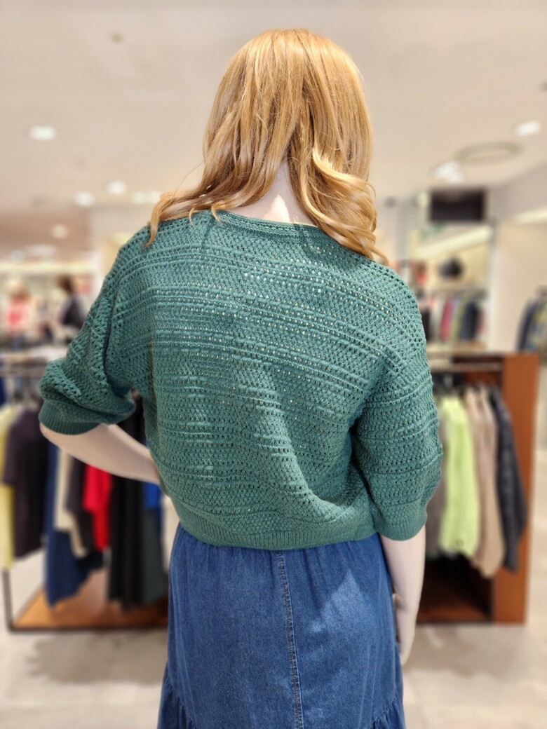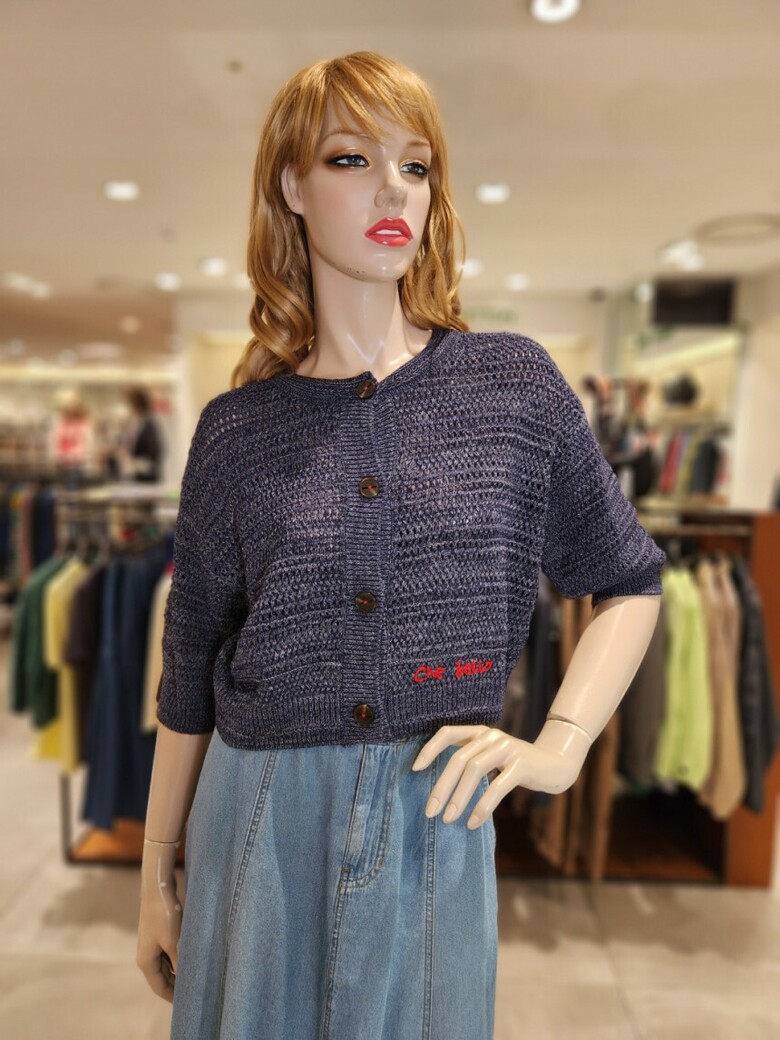 성글게 짜여진 니트 소재를 사용한 크롭 가디건입니다