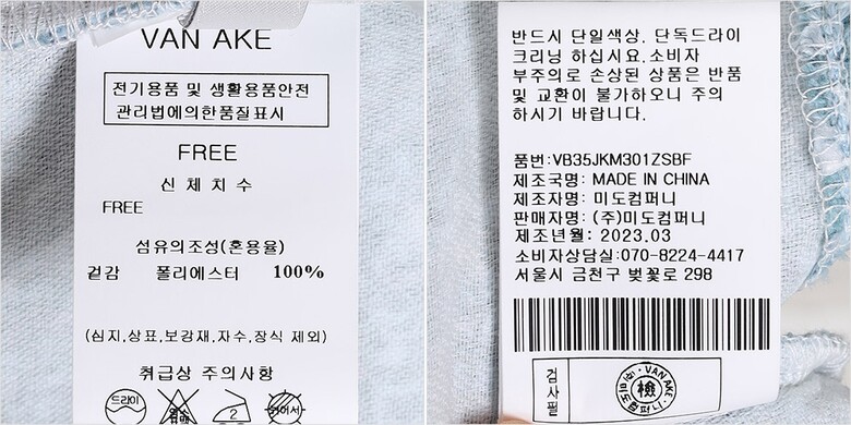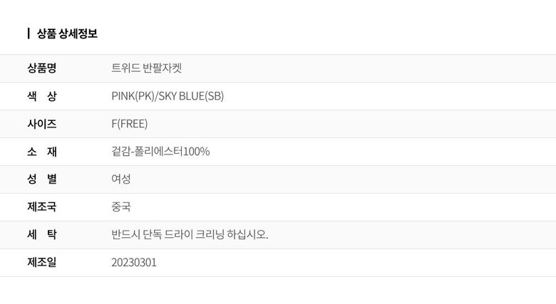 | 6. 세탁방법 및 취급시 주의사항 | 상세페이지 참조 |