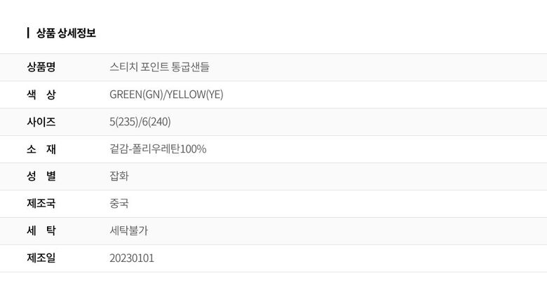 | 1. 제품 소재 (운동화인 경우에는 겉감, 안감을 구분하여 표시) | 겉감-폴리우레탄100% |
