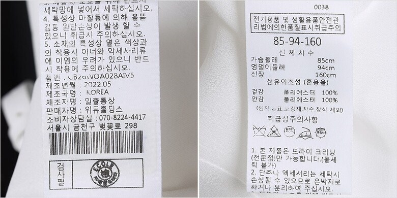 | 6. 세탁방법 및 취급시 주의사항 | 상세페이지 참조 |