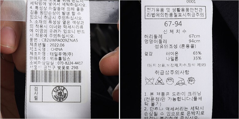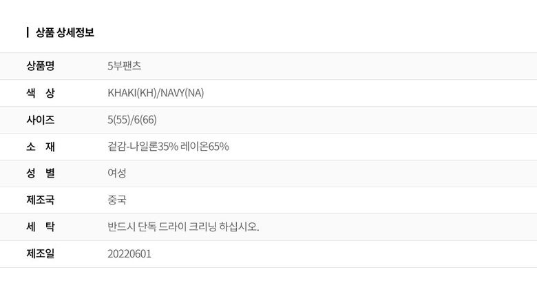 | 6. 세탁방법 및 취급시 주의사항 | 상세페이지 참조 |