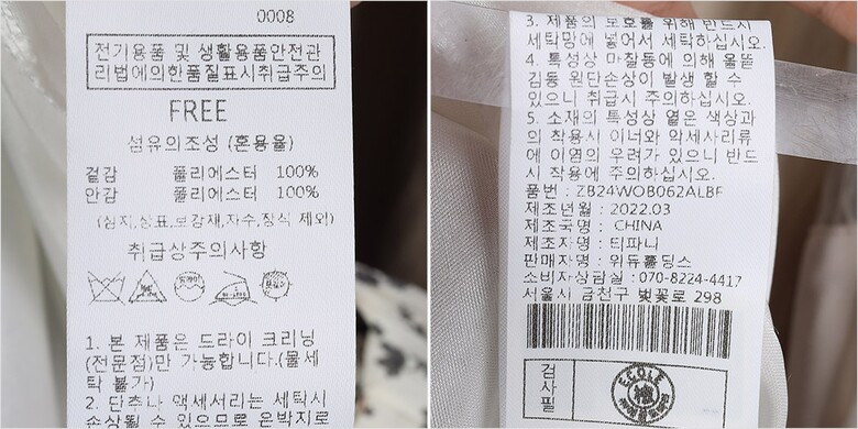 | 6. 세탁방법 및 취급시 주의사항 | 상세페이지 참조 |