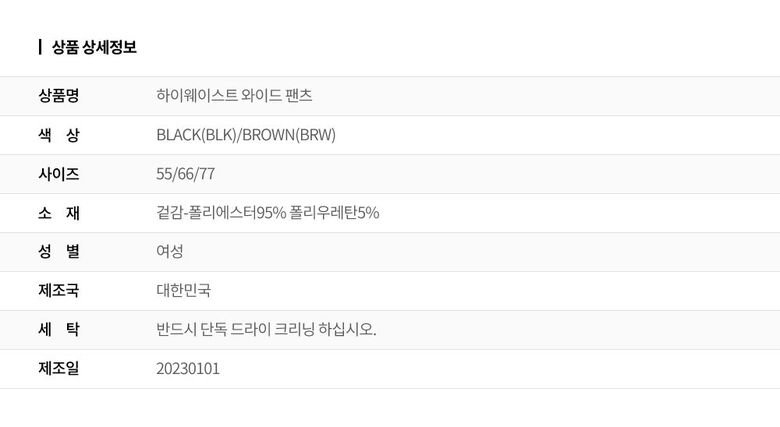 | 6. 세탁방법 및 취급시 주의사항 | 상세페이지 참조 |