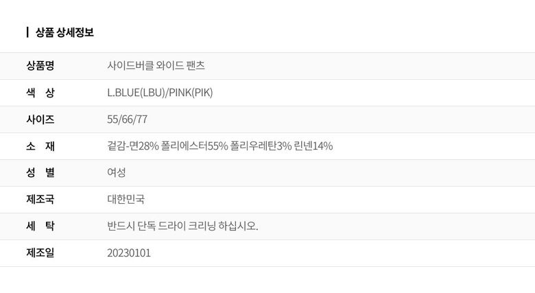 | 6. 세탁방법 및 취급시 주의사항 | 상세페이지 참조 |
