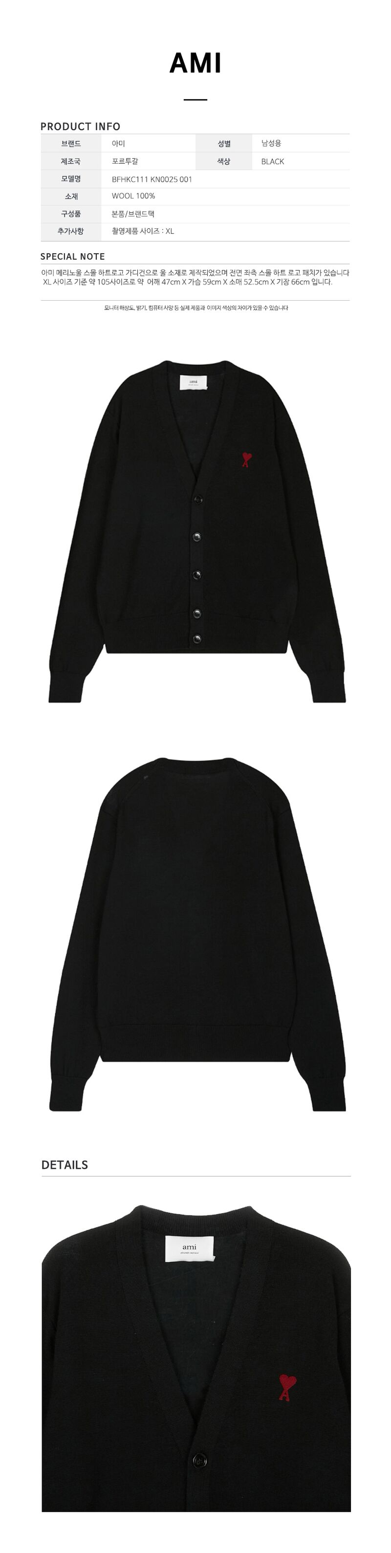 - #리본즈코리아 #BFHKC111KN0025001 #[명품] #25SS #아미 #남성 #스몰 #하트 #로고 #울 #가디건 #블랙 #BFHKC111 #KN0025 #001 #의류 #니트/가디건