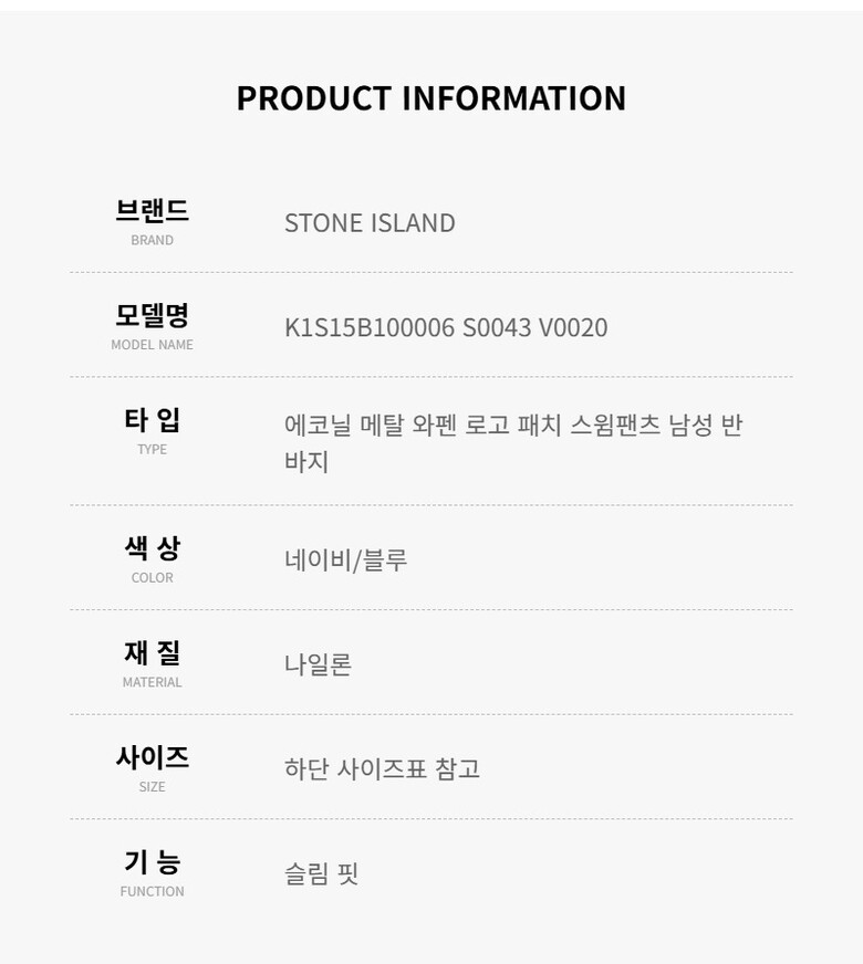 스톤아일랜드 반바지 K1S15B100006 S0043 V0020 에코닐 메탈 와펜 로고 남성반바지 당일발송