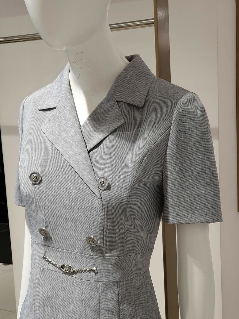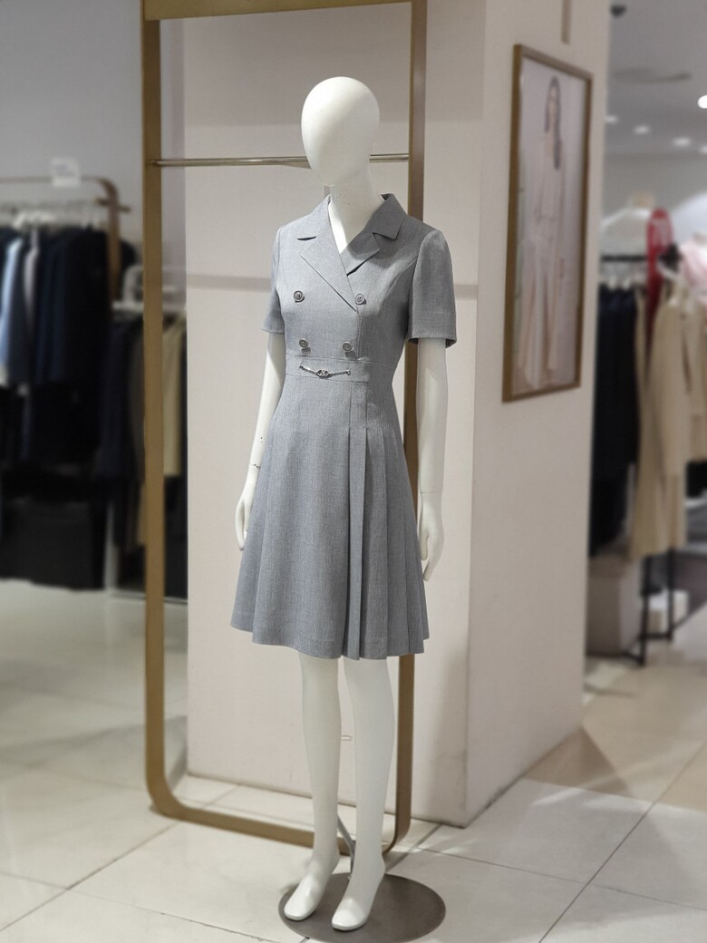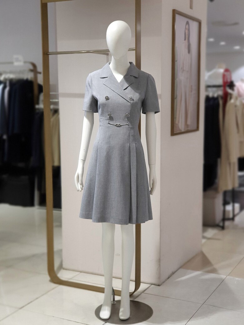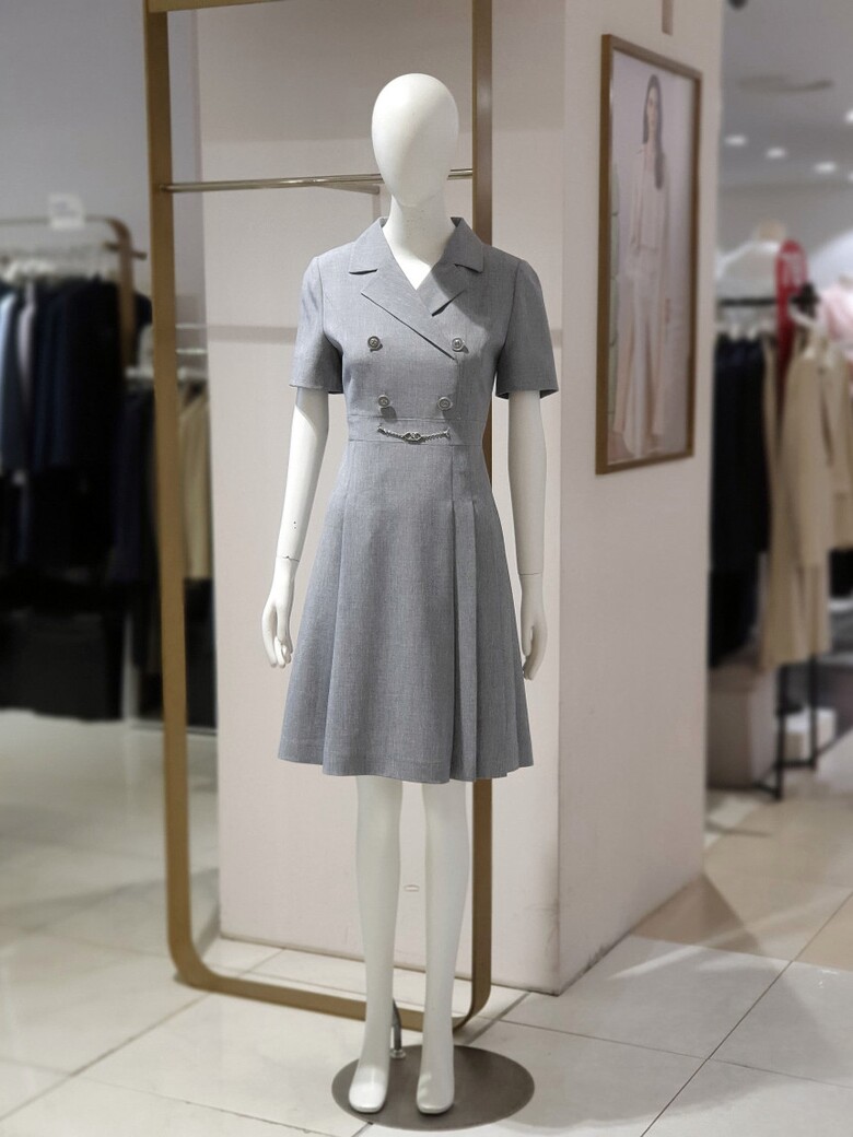 더블버튼 사이드 주름 칼라 원피스 02CRB35WOAP02C