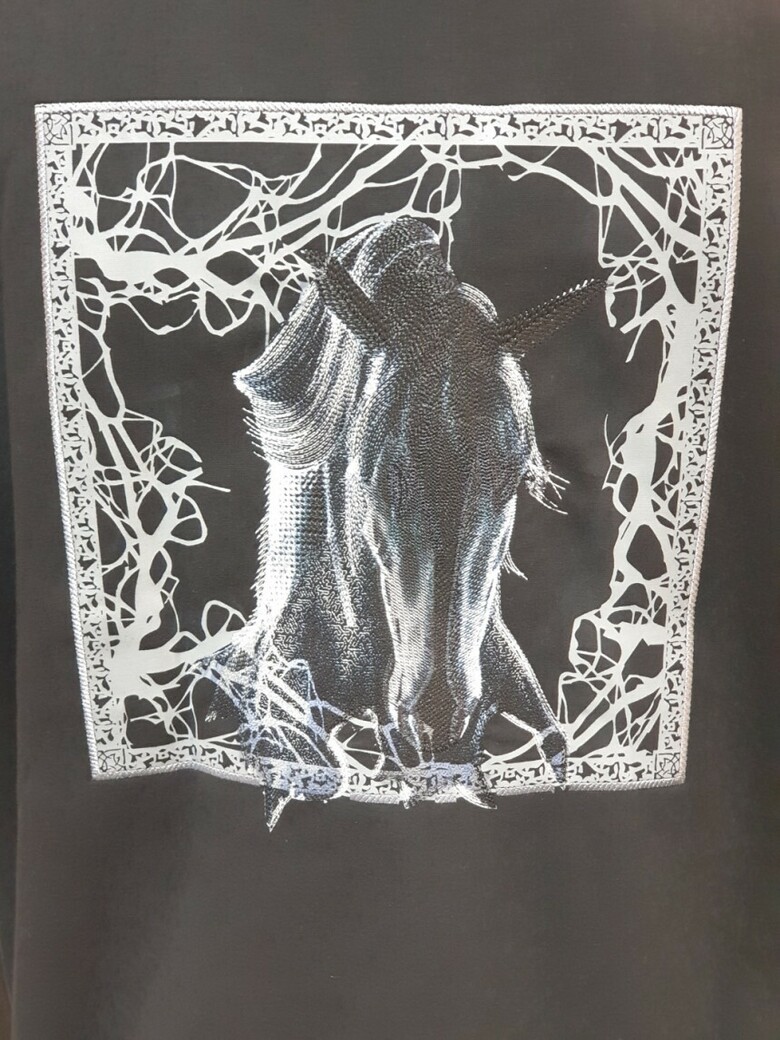 BON 23SS 블랙 면 100% 페가수스 카르마 아트웍 라운드 티셔츠 BN3MTS775BK