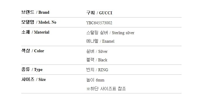 구찌 YBC645573002 (645573 J8410 1064) 인터로킹 G 에나멜 6mm 실버 반지
