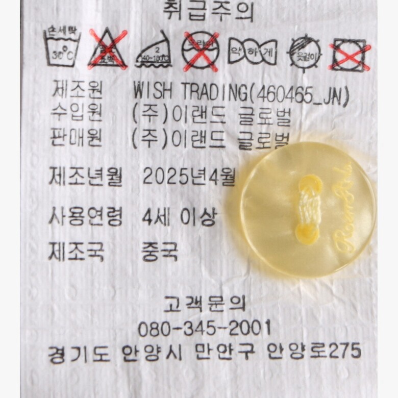 | 1. 제품 소재 (섬유의 조성 또는 혼용률을 백분율로 표시, 기능성인 경우 성적서 또는 허가서) | 상품상세참조 |