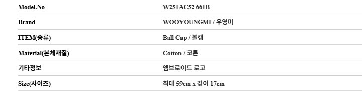 [명품] 우영미 W251AC52 661B 엠브로이드 로고 볼캡