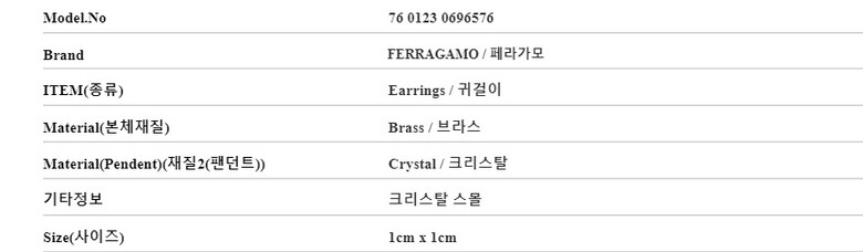 [명품] 페라가모 76 0123 0696576 760123 696576 간치니 크리스탈 스몰 귀걸이