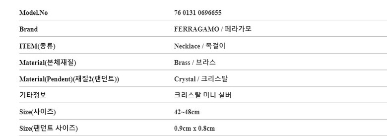 [명품] 페라가모 76 0131 0696655 760131 696655 간치니 크리스탈 미니 실버 목걸이
