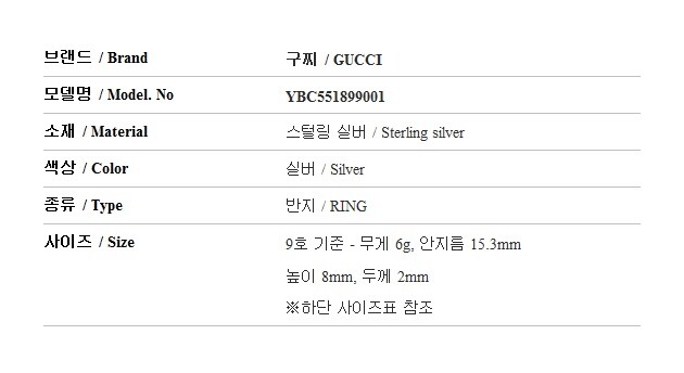 [명품] 구찌 YBC551899001 551899 J8400 0811 마몬트 GG 빈티지 8mm 실버 반지