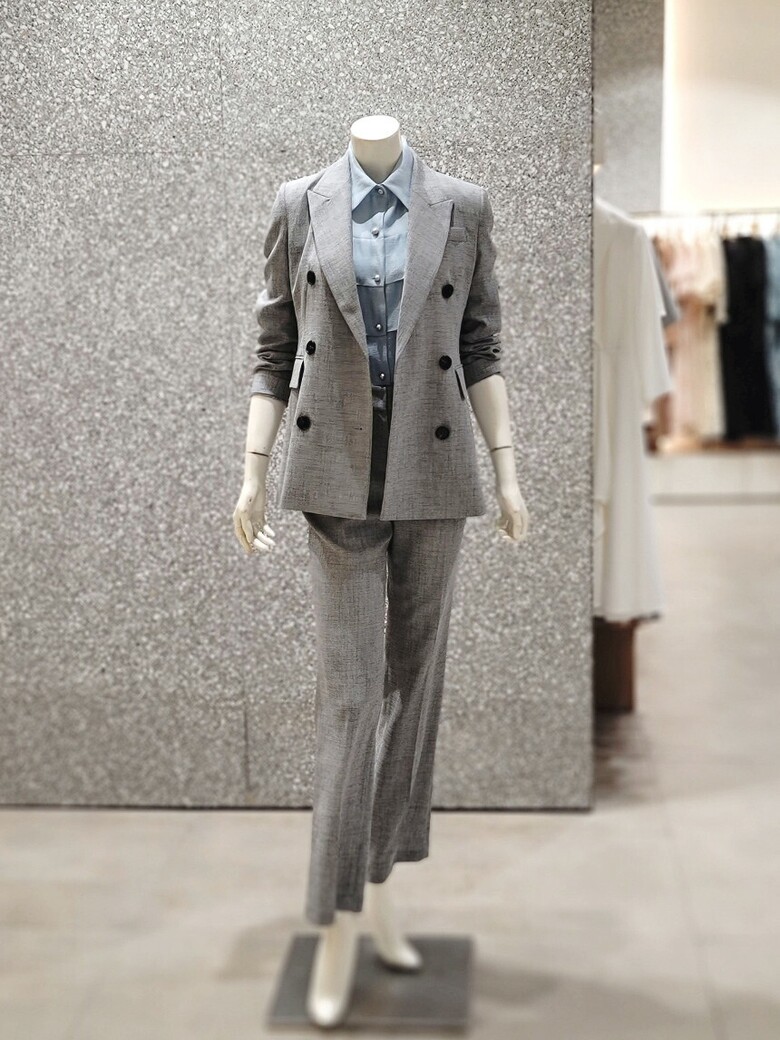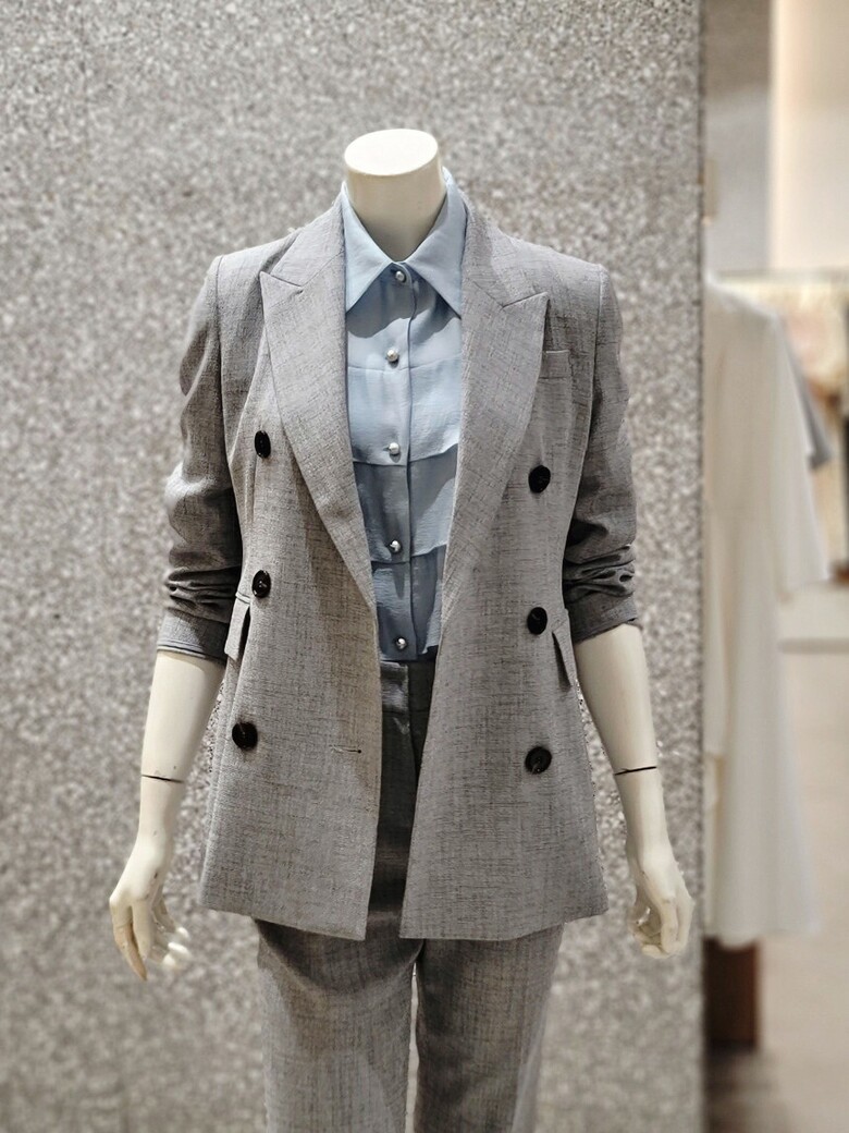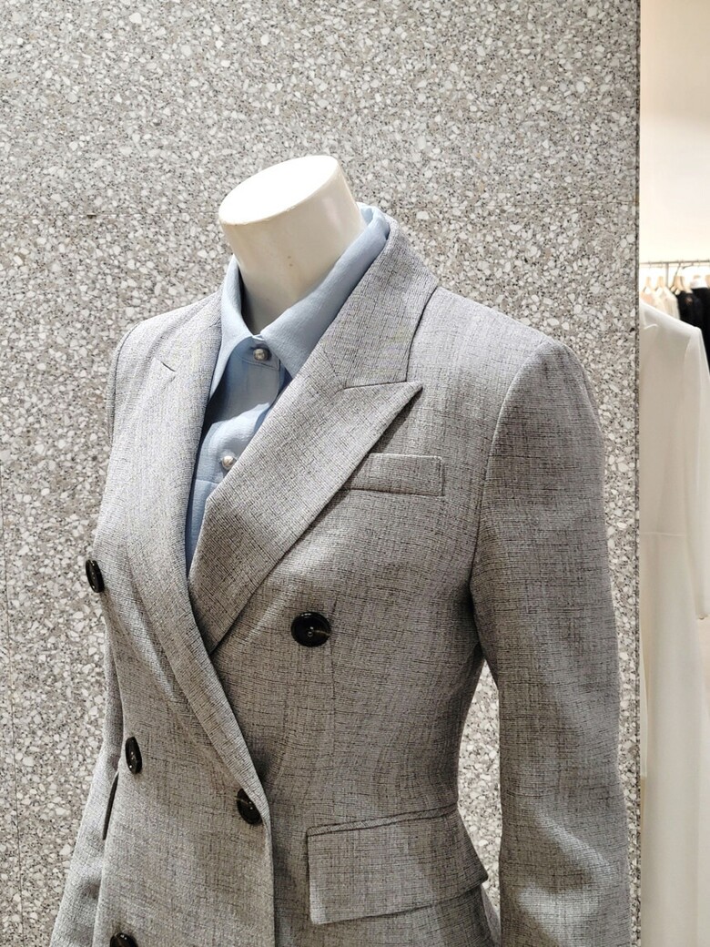 여밈 라인 더블브레스트 클로징 재킷입니다.