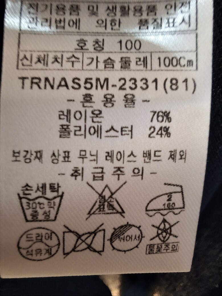 | 1. 제품 소재 (섬유의 조성 또는 혼용률을 백분율로 표시, 기능성인 경우 성적서 또는 허가서) | 레이온 76%, 폴리에스테르 24%, 레이스 |